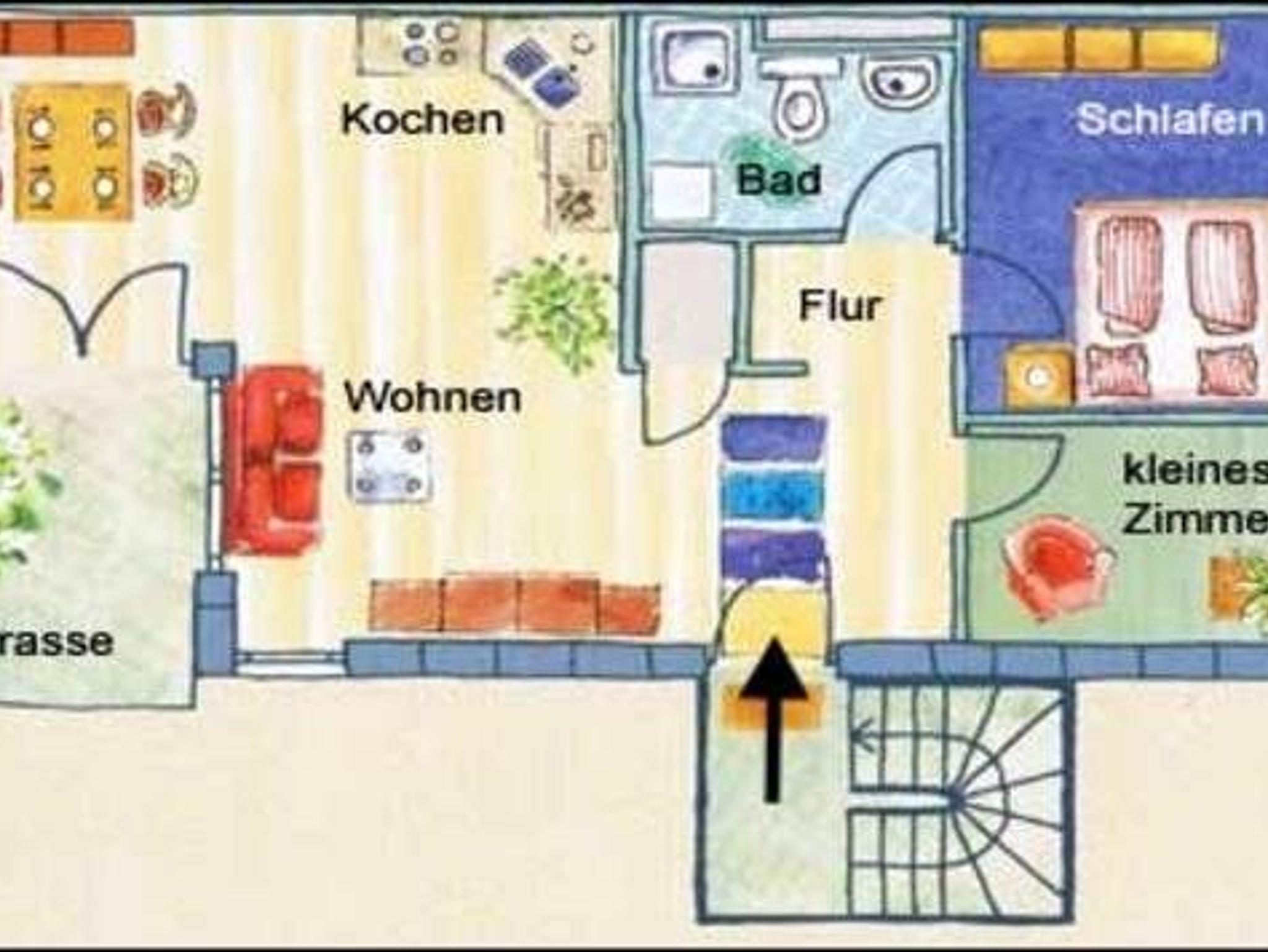 Die 64 qm große Wohnung bietet ausreichend Platz für 2-4 Personen. Die Wohnung besteht aus einem geräumigen Wohnzimmer (WLAN, Satelliten-TV, Stereoanlage) mit einer komplett eingerichteten Küche (Kühlschrank, Herd mit Backofen, Geschirrspüler und Mikrowelle), einem Schlafzimmer mit Doppelbett, einem zweiten Schlafzimmer mit Doppelbett-Schlafcouch und einem Bad mit Dusche und WC. (Grundriss)