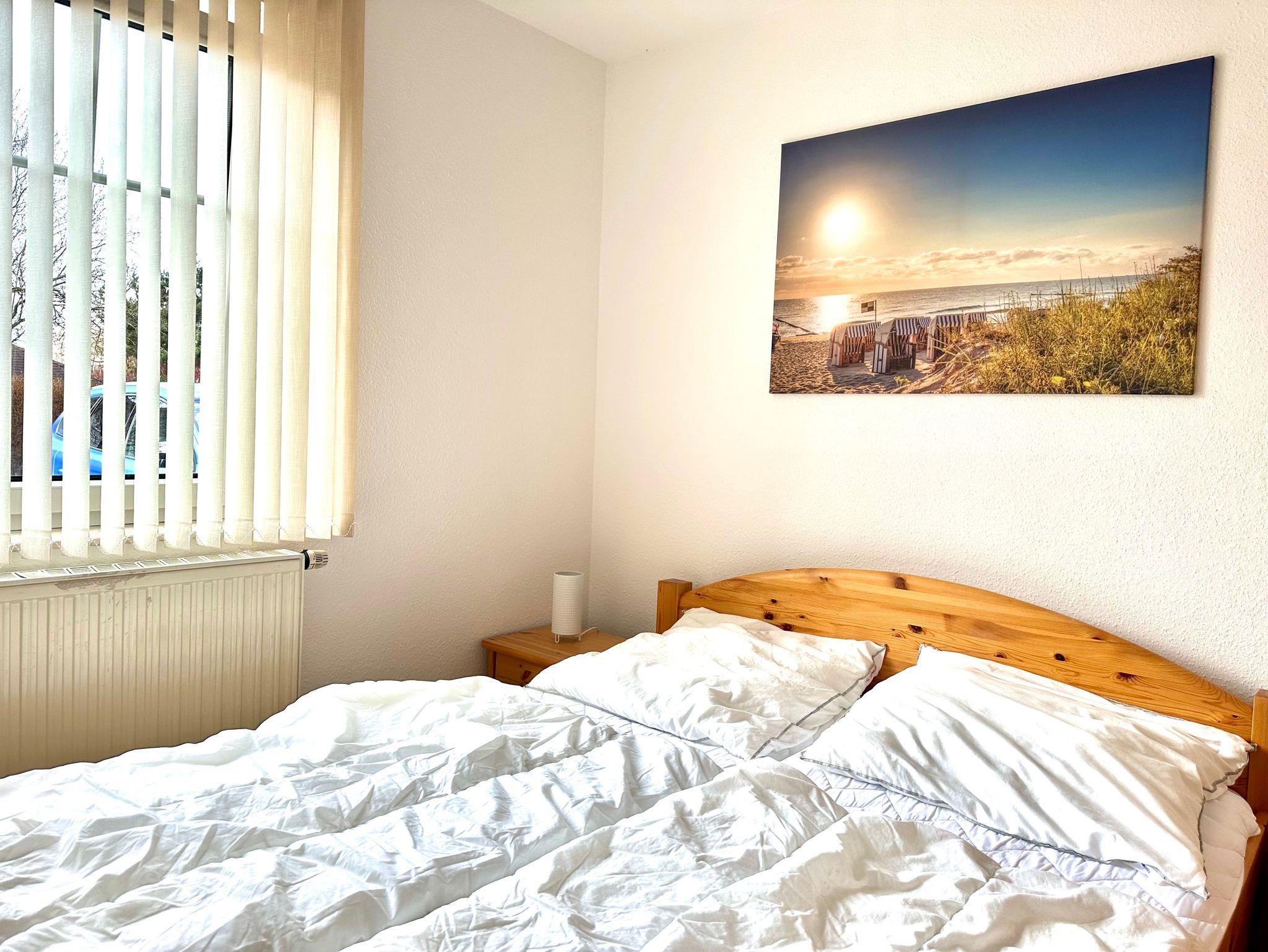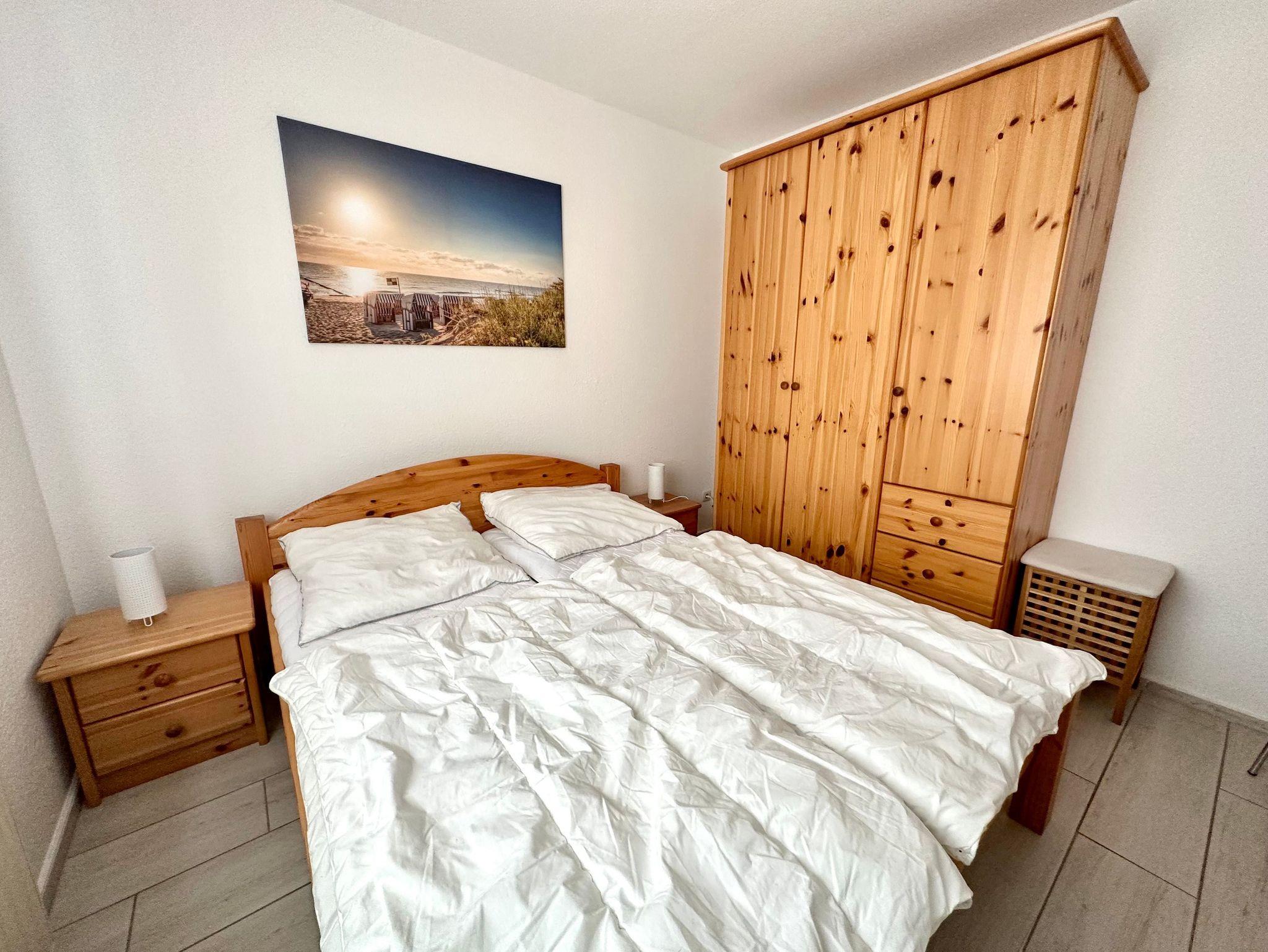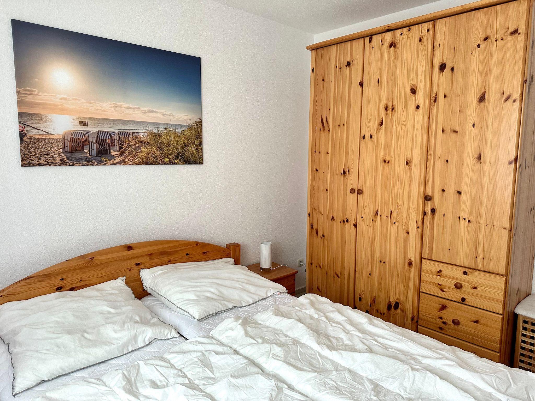 Die Ferienwohnung Sommergarten 40 01 ist eine 2-Raum-Wohnung mit einem Schlafzimmer, welches mit einem Doppelbett (2 x 90 x 200 cm) ausgestattet ist. Darüber hinaus ist im Schlafzimmer genügend Platz für ein Baby, welches noch im Babybett schläft.