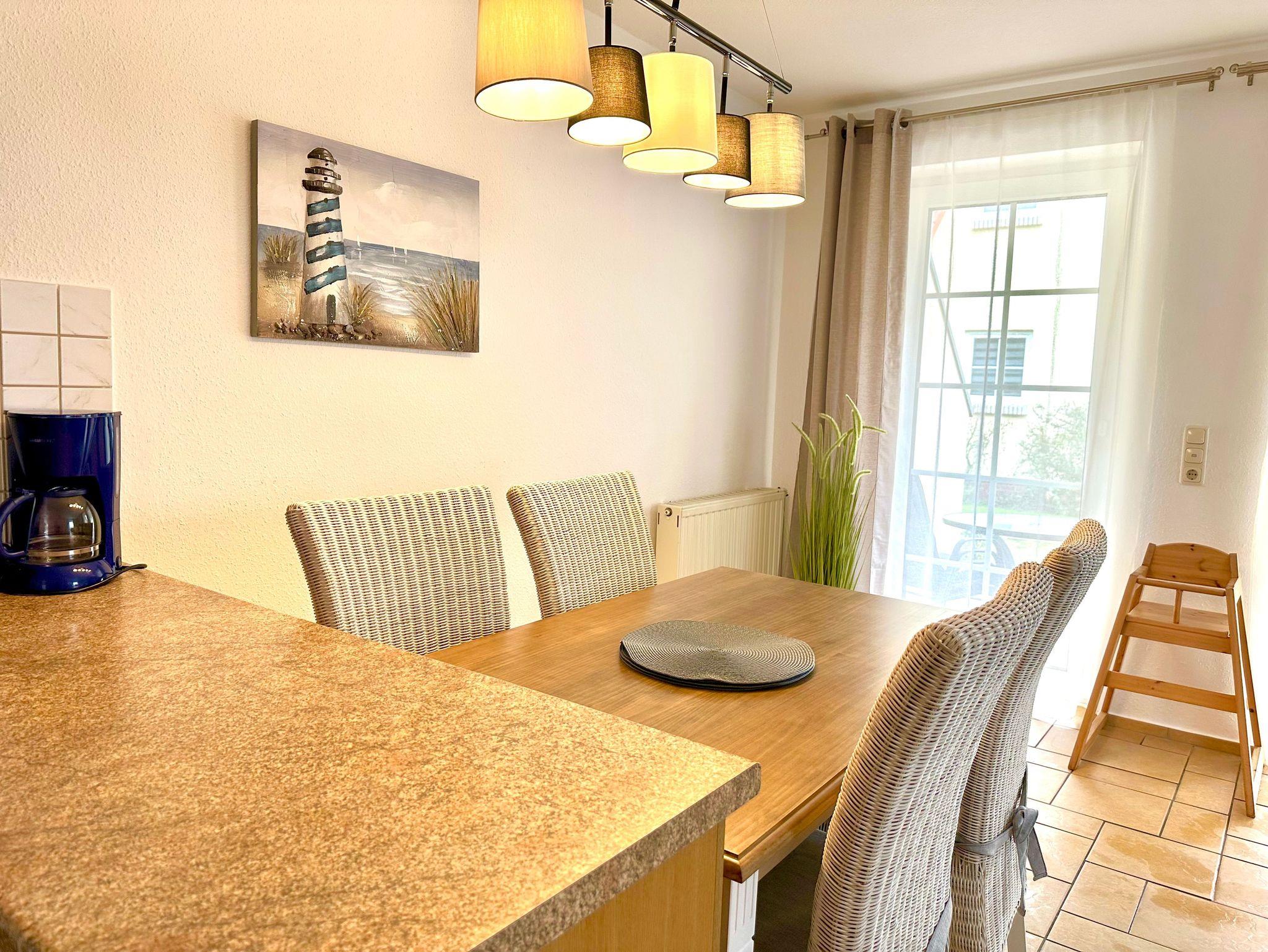 Diese Ferienwohnung bietet 4 Personen und 1 Baby ausreichend Platz. Auf der gemütlichen, teilüberdachten Terrasse sind Sitzmöbel und ein Tisch vorhanden. Ein kostenfreier Parkplatz steht Ihnen direkt vor der Haustür zur Verfügung.