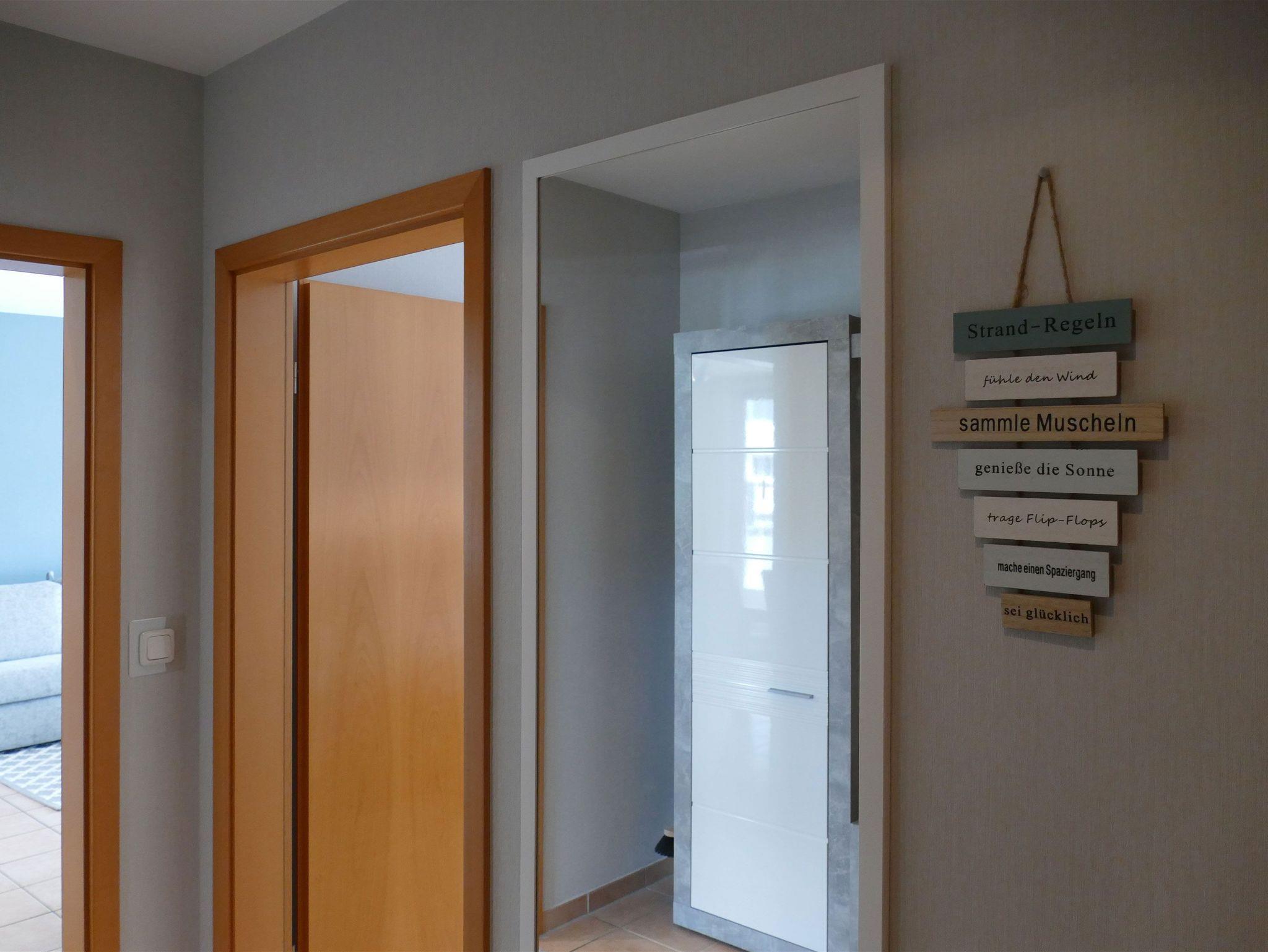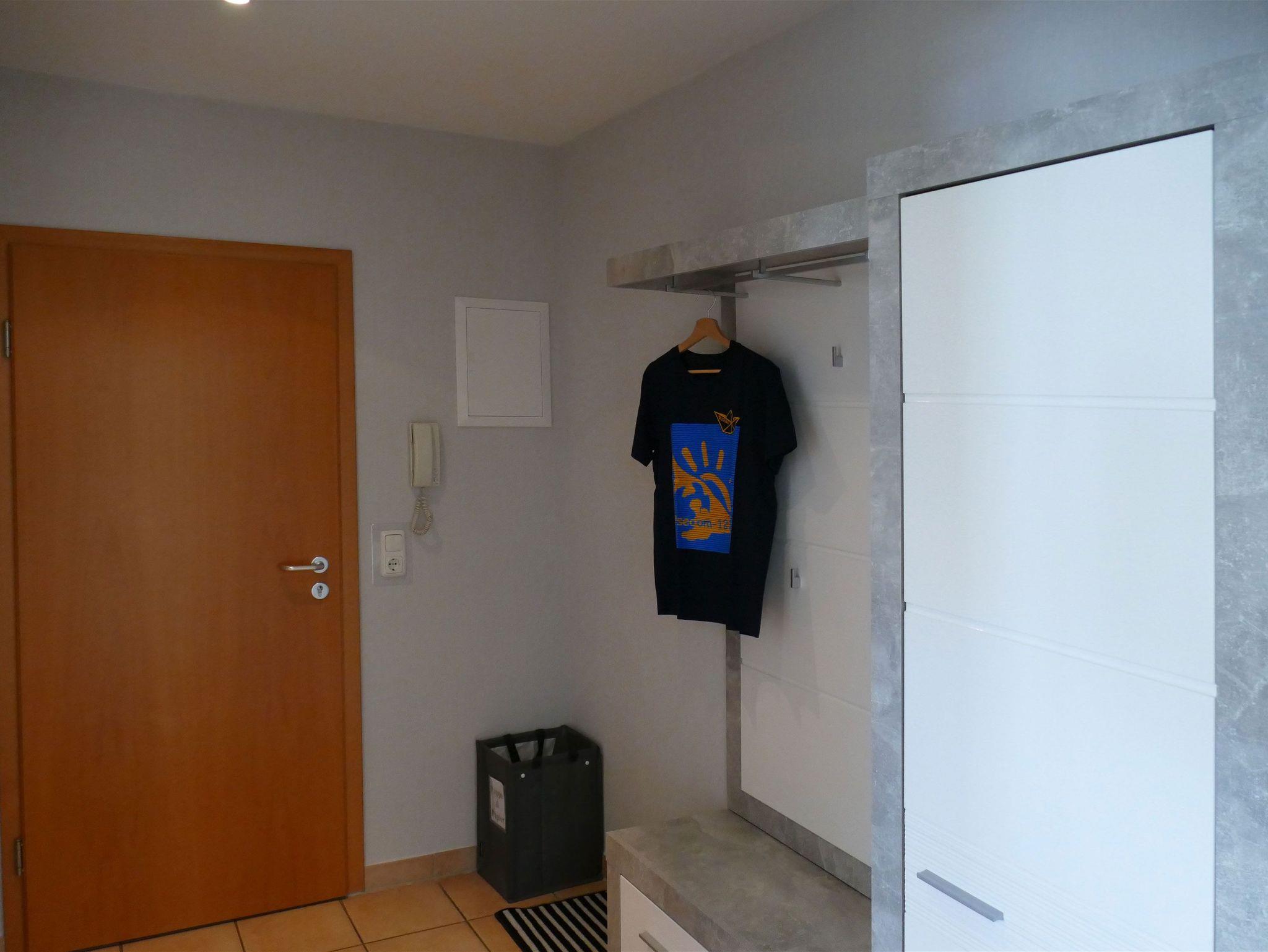 Im Flur der Wohnung finden Sie zusätzlich einen zweiten Kleiderschrank, eine Garderobe und eine Abstellmöglichkeit für Ihr Gepäck.