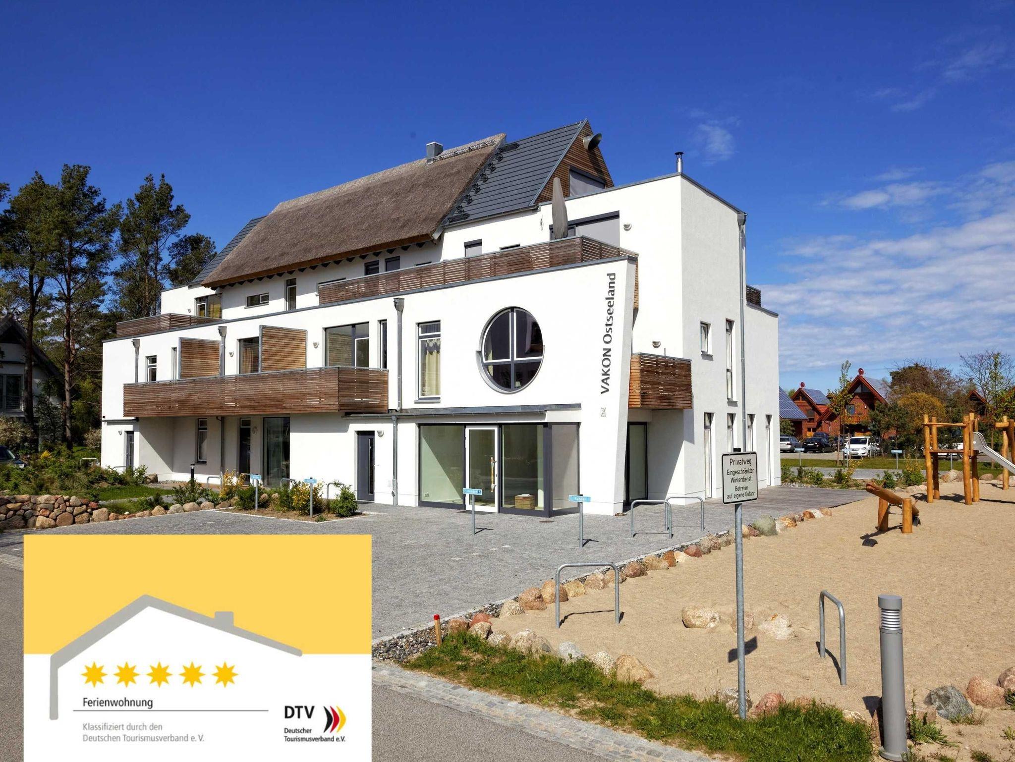 VAKON Ostseeland in Karlshagen ist eine in Mecklenburg-Vorpommern einzigartige 5-Sterne-Ferienhaus-Anlage bestehend aus 42 großzügigen, schilfrohrgedeckten Strandhäusern mit bis zu 220 m² Wohnfläche und 26 Ferienwohnungen mit bis zu ca. 180 m² Wohnfläche. Dieses exklusive 2013/14 erbaute Appartementhaus mit 8 Wohneinheiten ist ca. 4 Gehminuten vom Strand entfernt. Die Wohnungen verfügen über Waschmaschine, Terrasse oder Balkon und PKW-Stellplatz.