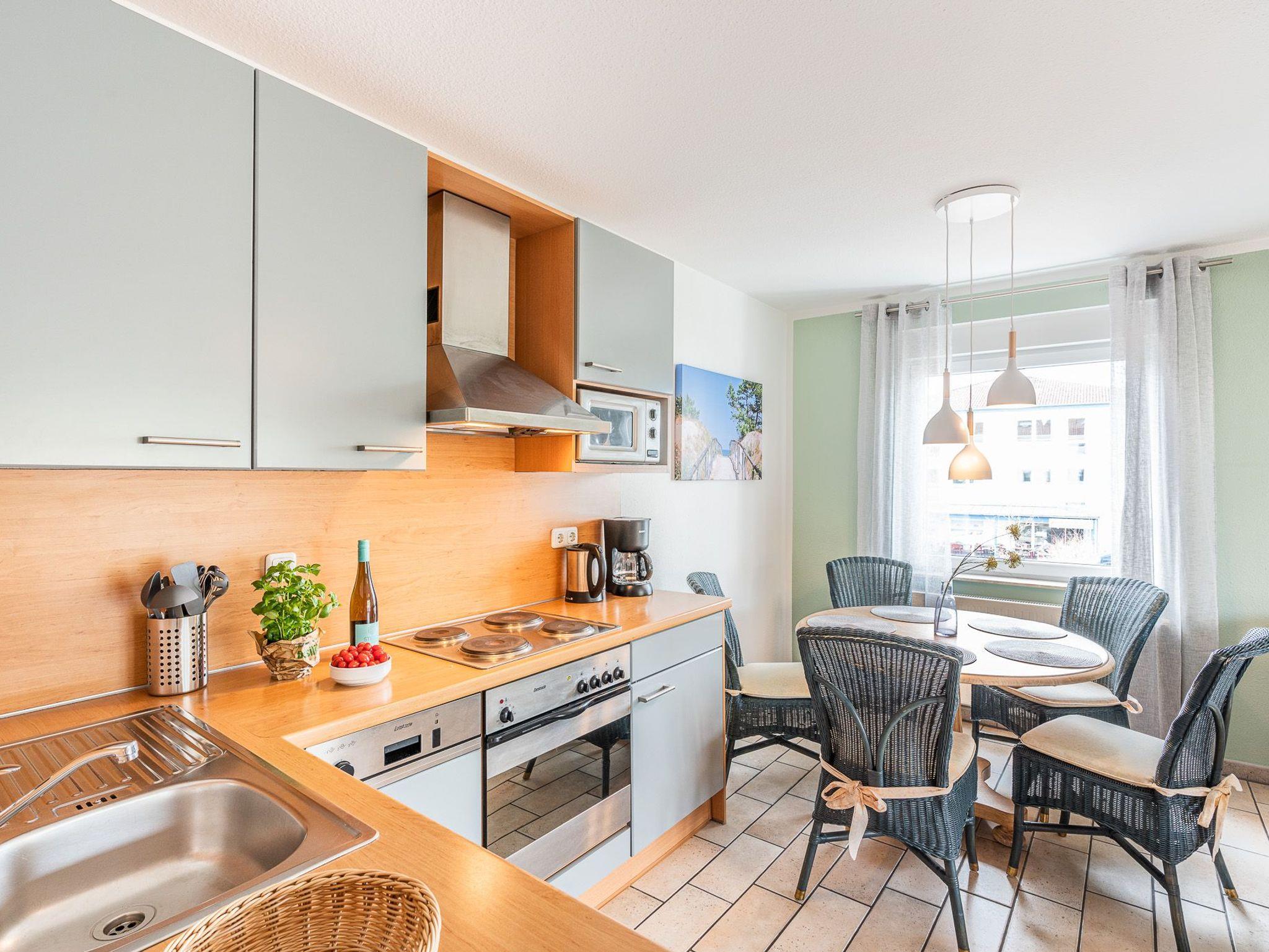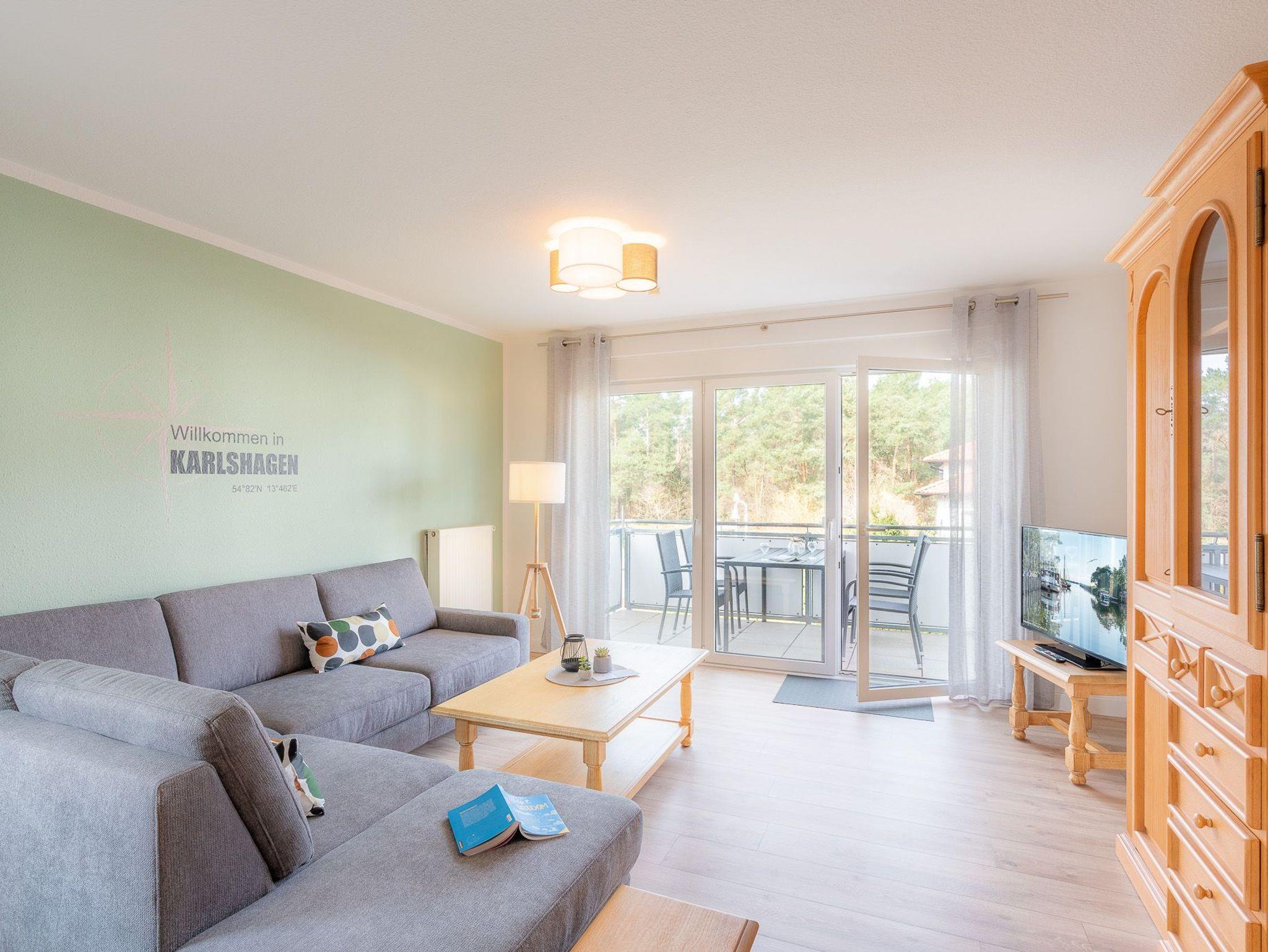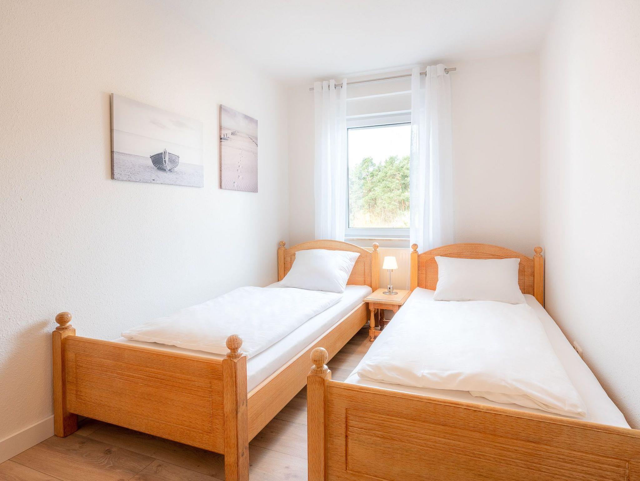Der behagliche Wohnraum mit einer gemütlichen Sitzecke und einem Fernseher, sowie die komplett eingerichtete, offene Küche bieten einen guten Ort um sich gemeinsam in der Wohnung zu entspannen. Durch die zwei Schlafzimmer, gibt es jedoch auch einen ruhigen Rückzugsort um abzuschalten. Ein Schlafzimmer ist mit einem Doppelbett ausgestattet und eins mit zwei Einzelbetten. Das Badezimmer besitzt eine Dusche und ein WC. Auf dem Balkon können Sie gemütlich den Abend ein- und ausklingen lassen. WLAN ist vorhanden. Waschmaschine und Trockner können Sie gegen Entgelt verwenden. Natürlich stellen wir Ihnen ein PKW-Parkplatz vor dem Haus zur Verfügung. Zum feinsandigen, weißen Badestrand sind es nur ca. 3-4 Gehminuten.