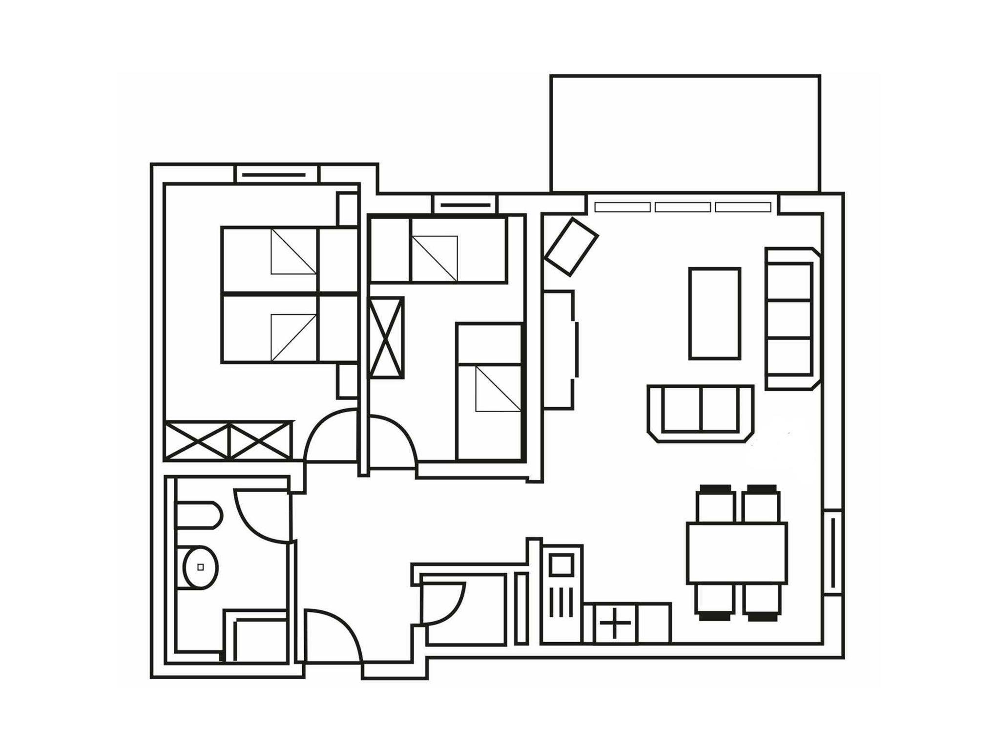 Die Ferienwohnungen vom Typ 2 sind gemütlich eingerichtet. Sie verfügen über 69 m² und sind für bis zu 6 Personen ausgelegt (4 Pers. + 2 Aufbettungen). Sie besitzen zwei Schlafzimmer, ein Wohnbereich mit einer offenen Küche und ein Badezimmer.