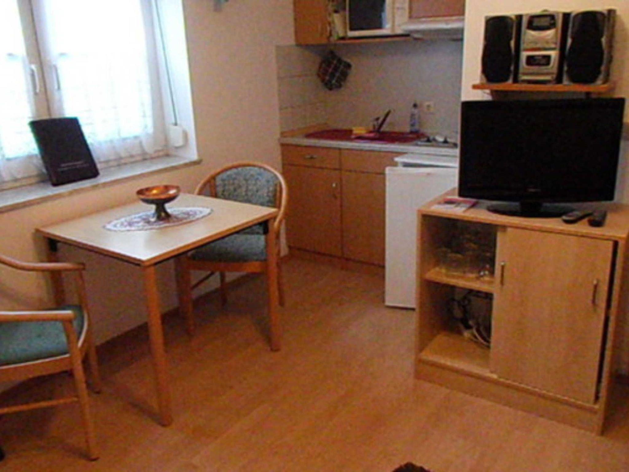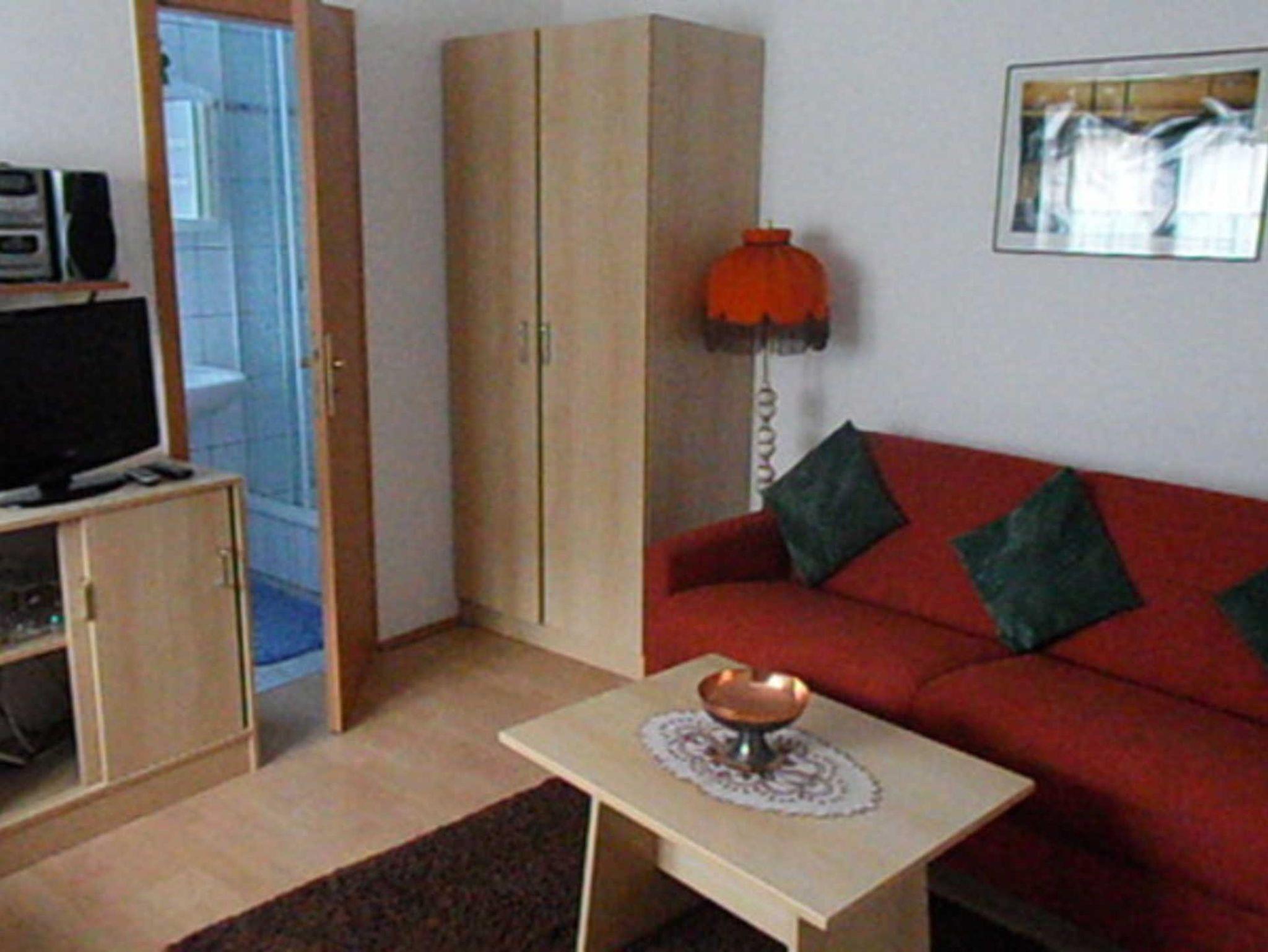 Ausstattung: DU/WC,kombinierte Wohnküche mit Farb-TV,Radio,Doppelbettcouch für 2 Pers. Fußbodenheizung.Küchenzeile mit Kochgelegenheit,Kühlschrank,Mikrowelle,Kaffeemaschine u. Geschirr. Bettwäsche und Handtücher können mit Aufpreis von 15 Euro pro Person ausgeliehen werden. Parkplatz befindet sich am Haus.
