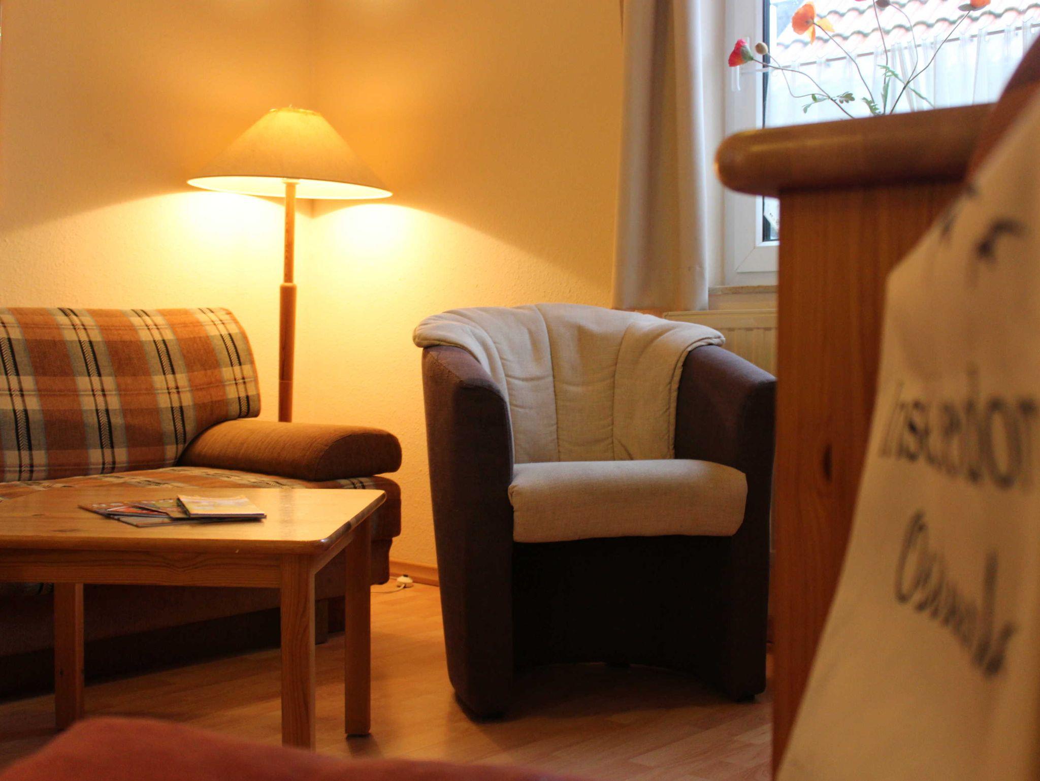 Im Wohnbereich befindet sich eine Couch, die als Schlafcouch für 2 Personen genutzt werden kann. Vom Wohnbereich gelangen Sie auf die Terrasse. Hier können Sie auch rauchen.