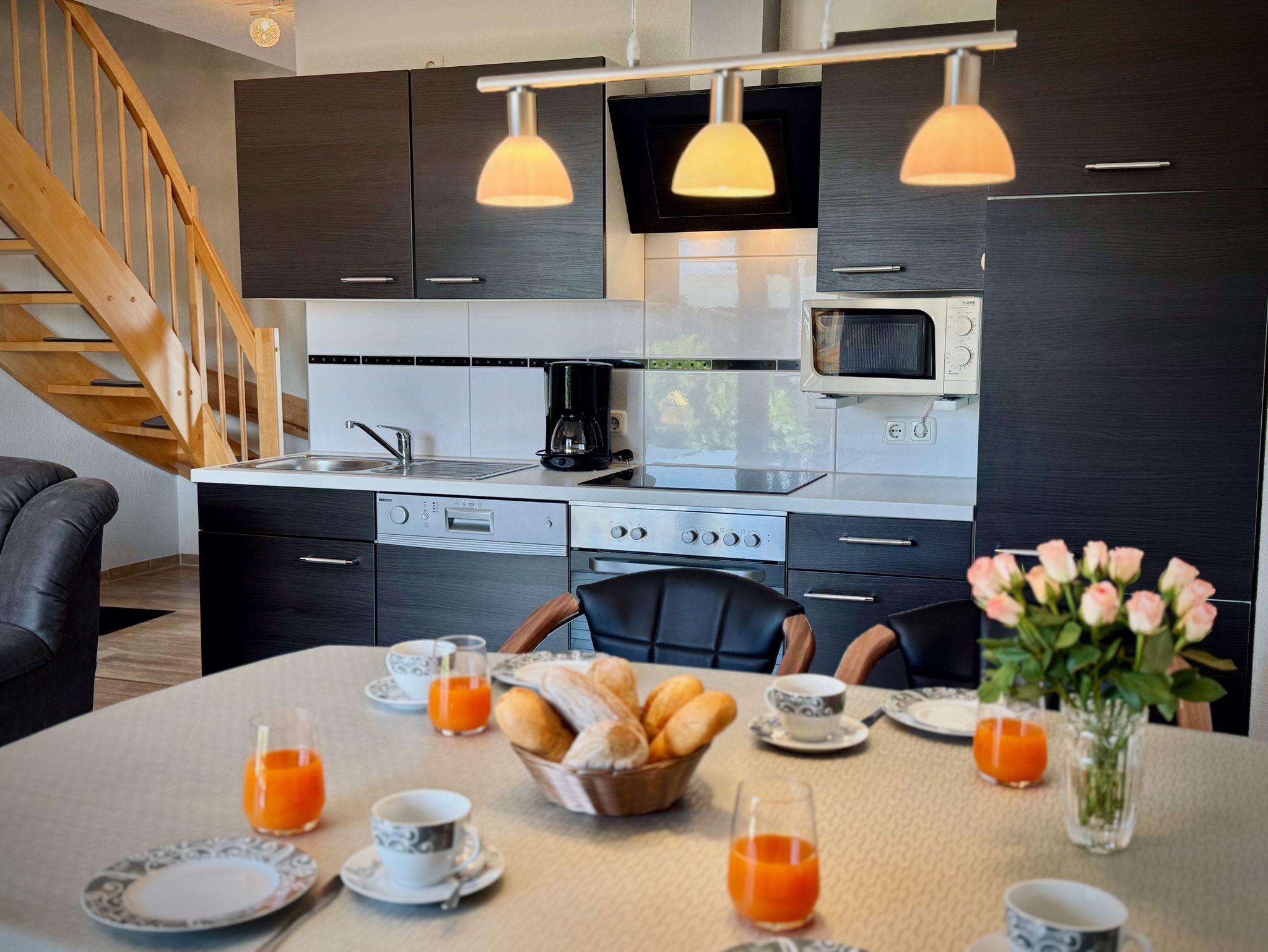 Die Ferienwohnung Nico ist eine 50 m² große, modern ausgestattete Wohnung. Im Obergeschoss befindet sich 1 Schlafzimmer mit Doppelbett und einem Einzelbett, (Babybett kostenfrei möglich). Im Erdgeschoss befinden sich der Wohn- und Kochbereich sowie das Bad mit Dusche/WC. Das Wohnzimmer ist mit Couchgarnitur, TV u. Radio ausgestattet. Der Kochbereich besteht aus einer Einbauküche mit Geschirrspüler, Backofen, Kühlschrank mit Gefriermöglichkeit, Kaffeemaschine, Wasserkocher, Toaster und Mikrowelle sowie einem Essbereich. Die Terrasse ist mit Sitzmöbeln ausgestattet, im Garten befindet sich eine Sitzecke mit Grillmöglichkeit. Ein PKW-Stellplatz und Unterstellmöglichkeit für Fahrräder sind auf dem Grundstück vorhanden. Bettwäsche, Geschirrhandtücher, Nebenkosten, Endreinigung und WLAN sind im Preis inklusive. Handtücher bringen Sie bitte mit. Die Ferienwohnung ist eine Nichtraucherwohnung, Haustiere sind nicht erlaubt.