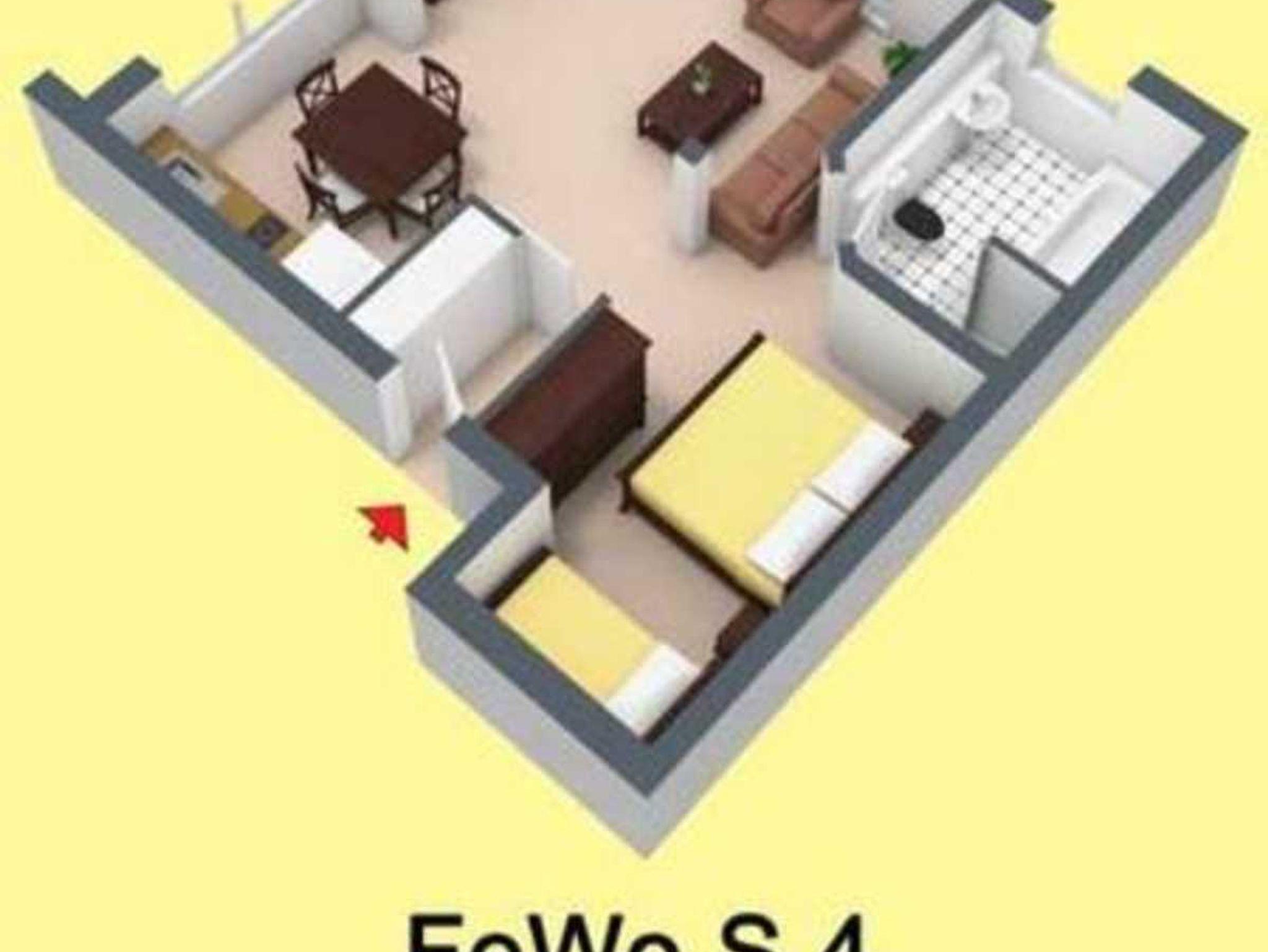 - eine Ein-Raum-Ferienwohnung (Typ S4, ca. 50 m²) mit eigener Terrasse