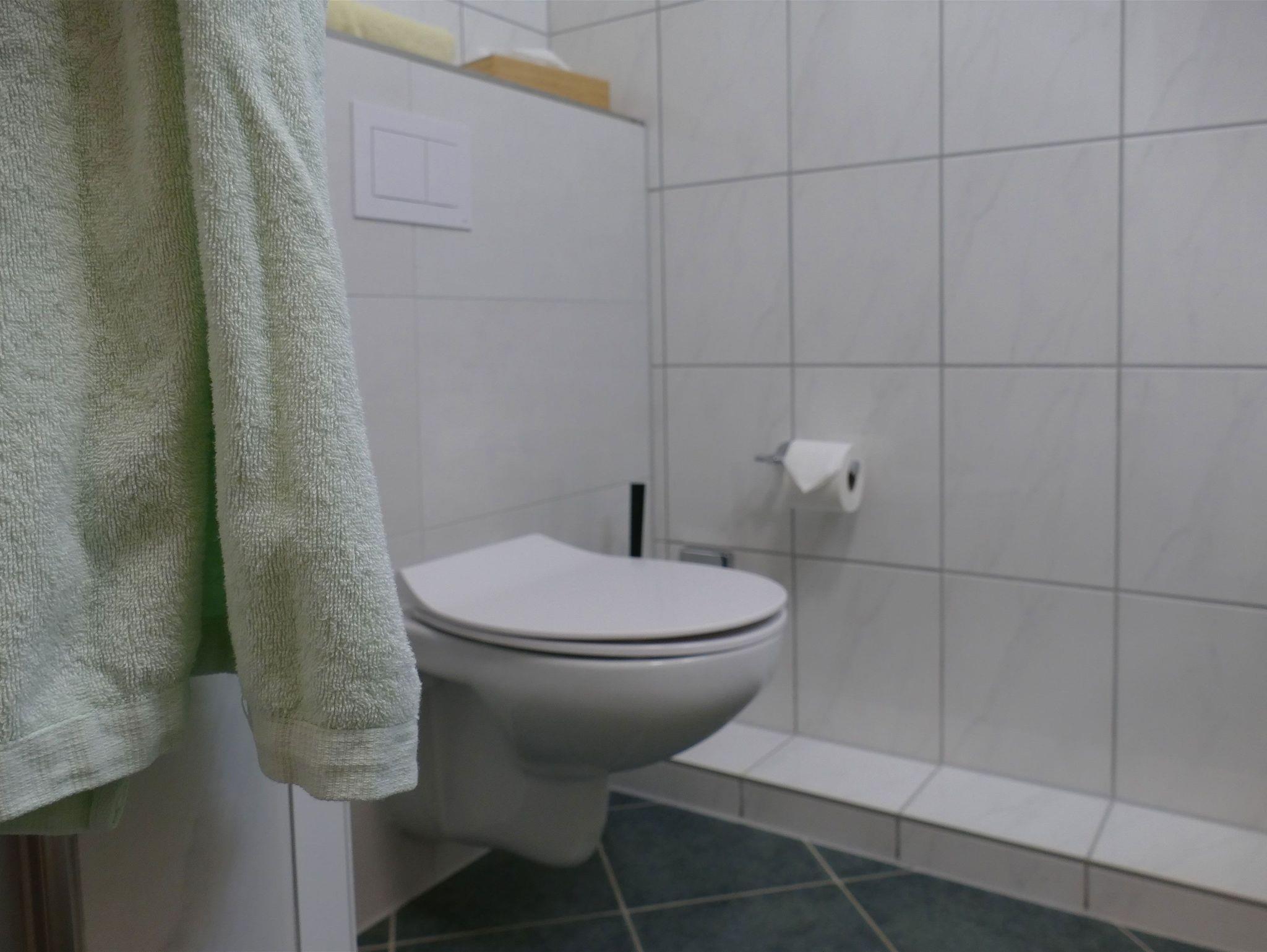 • Bad mit Dusche, Waschtisch und WC