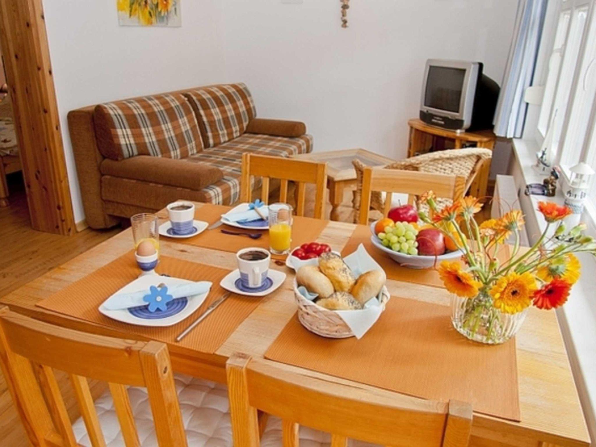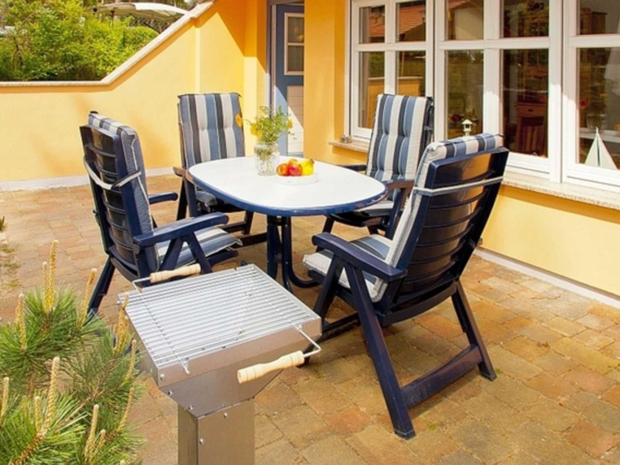 Das Wohnzimmer ist mit Doppelbettcouch,Radio/TV,Couchtisch,Rattansessel u. Essecke ausgestattet,das Schlafzimmer mit Doppelbett. Zur Küche gehören u.a.Herd incl.Backofen, Kühlschrank mit Gefrierfach, Geschirr. Zum Bad gehört Dusche,WC u.Waschtisch, Fön.Zur Fewo gehören Terrasse,Holzkohlegrill,Parkplatz