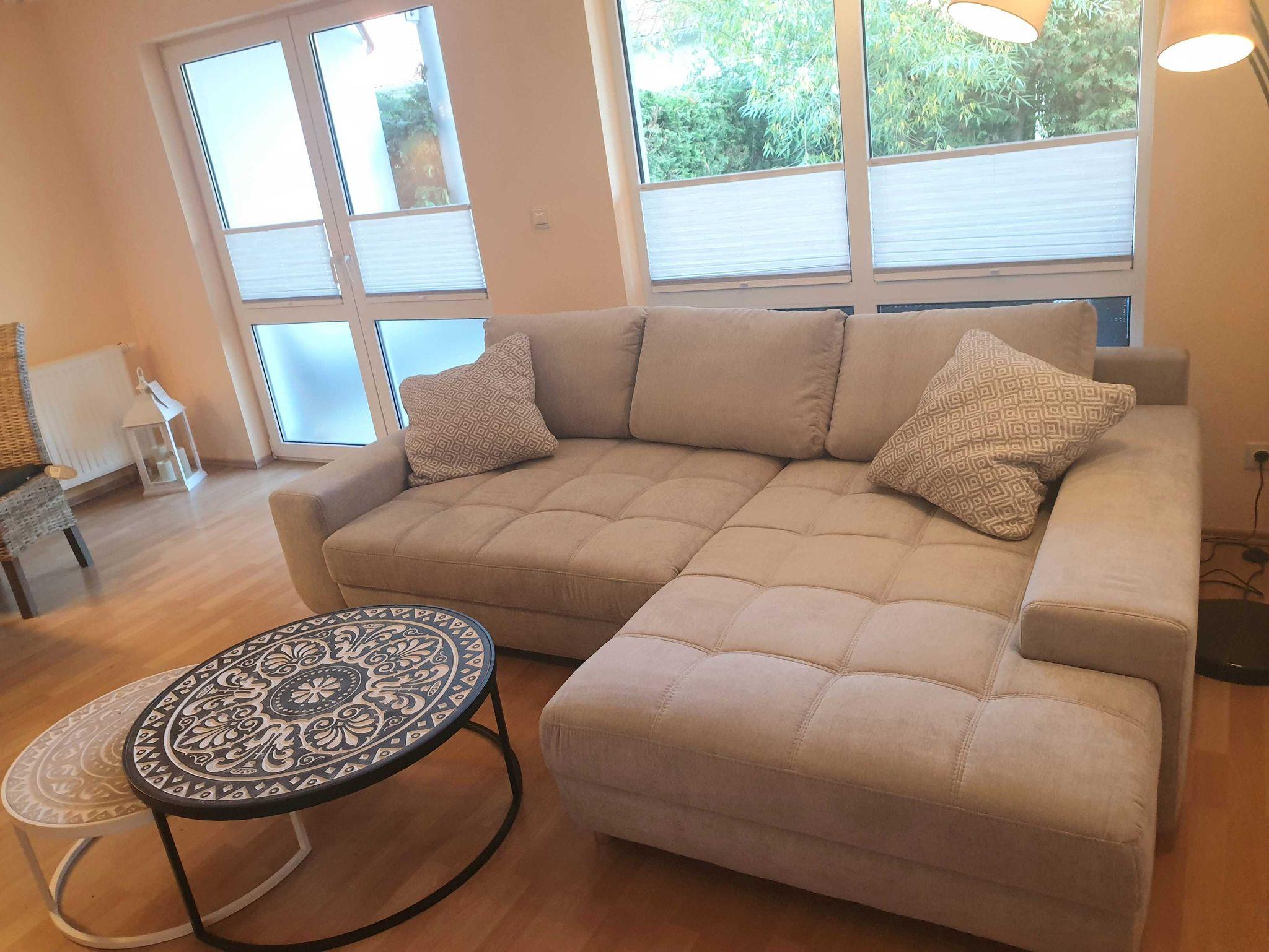 Die Wohnung empfehlen wir für 2 Erwachsene plus 1 Baby. Sie verfügt zusätzlich über eine Schlafcouch (Liegefläche: 150 x 200 cm) wodurch die Belegung um 1-2 Personen, gegen Gebühr aufgestockt werden kann. Zu der Wohnung gehört ein kostenfreier Parkplatz direkt vor dem Haus.