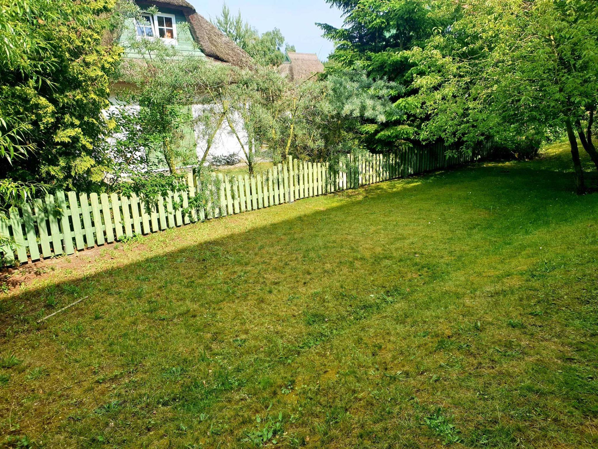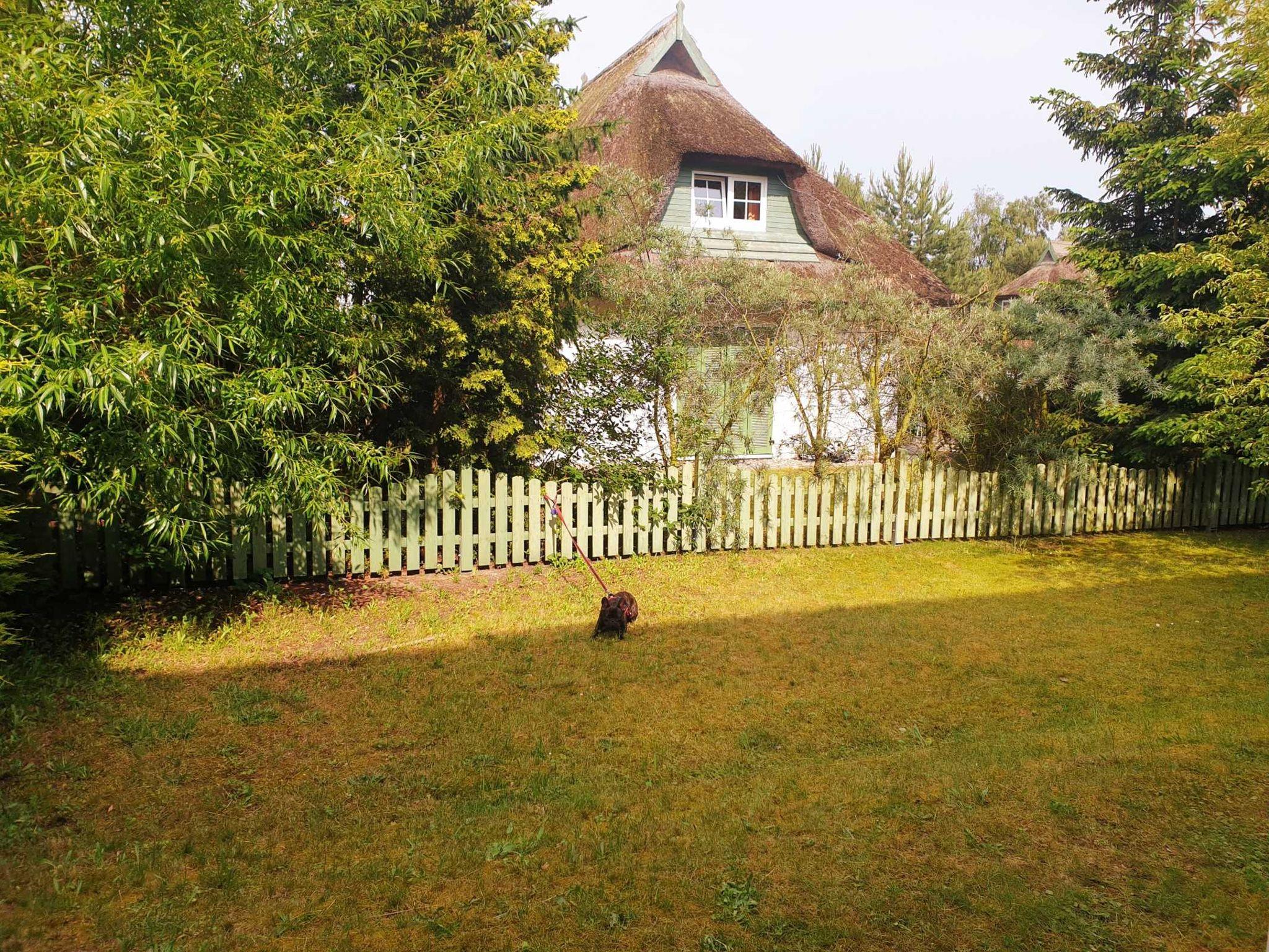 Die Ferienwohnung Strandgold verfügt über eine überdachte Terrasse, auf welcher Sitzmöbel und ein Tisch vorhanden sind. Der kleine Gartenbereich wird durch Hecken, welche hervorragenden Sichtschutz bieten, abgegrenzt.