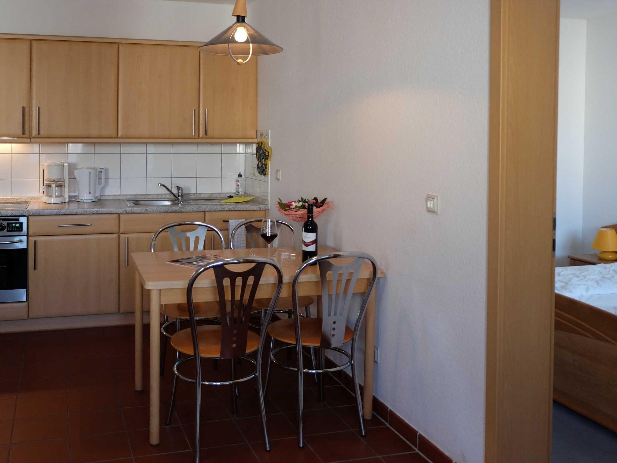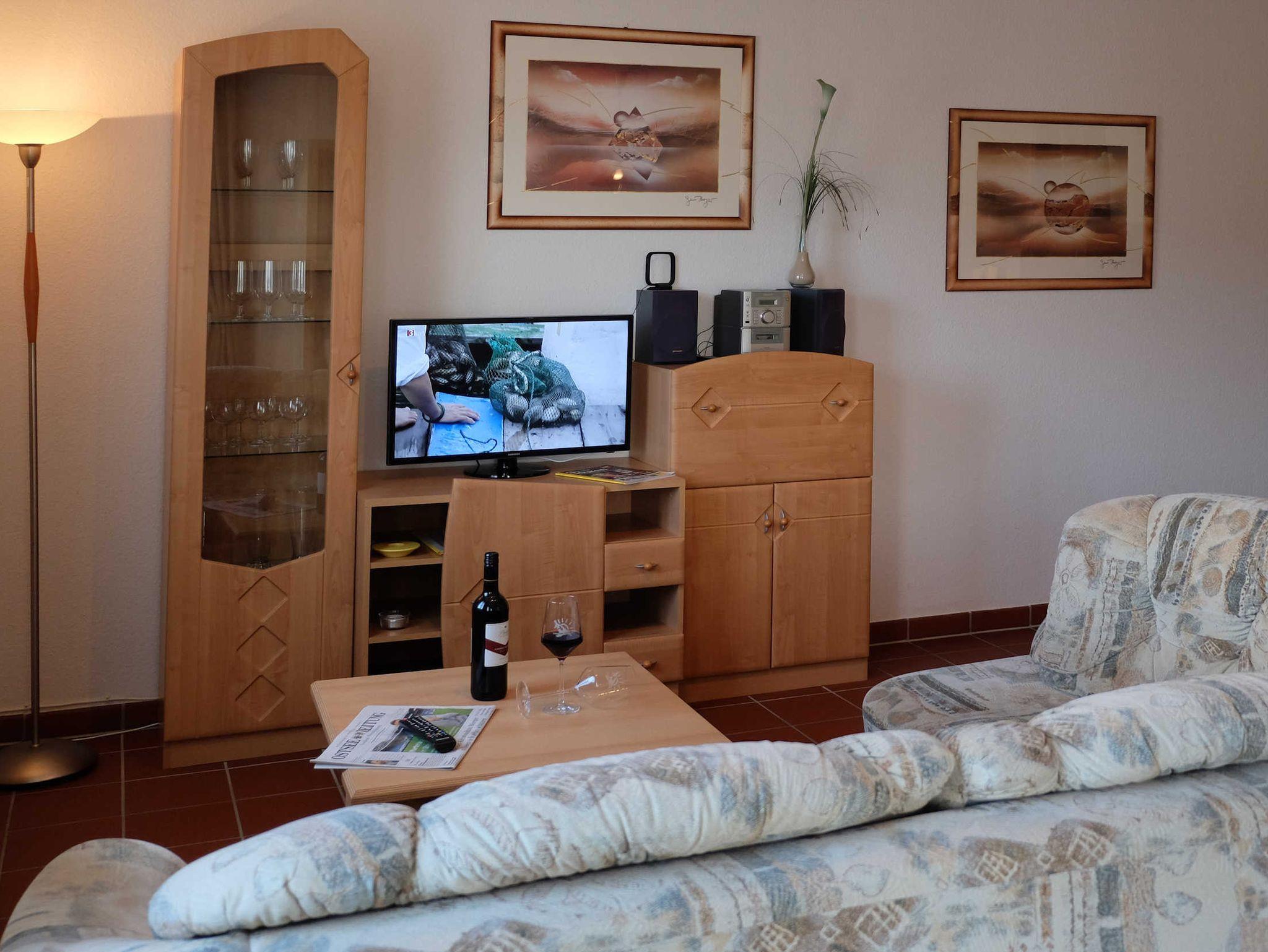 Die besonders strandnahe Zwei-Raum-Wohnungen (ca. 45 m²) liegt im 1. OG des Ferienhauses und ist mit einer Kochnische, Duschbad, Balkon, Kabel-TV u.v.m. ausgestattet.