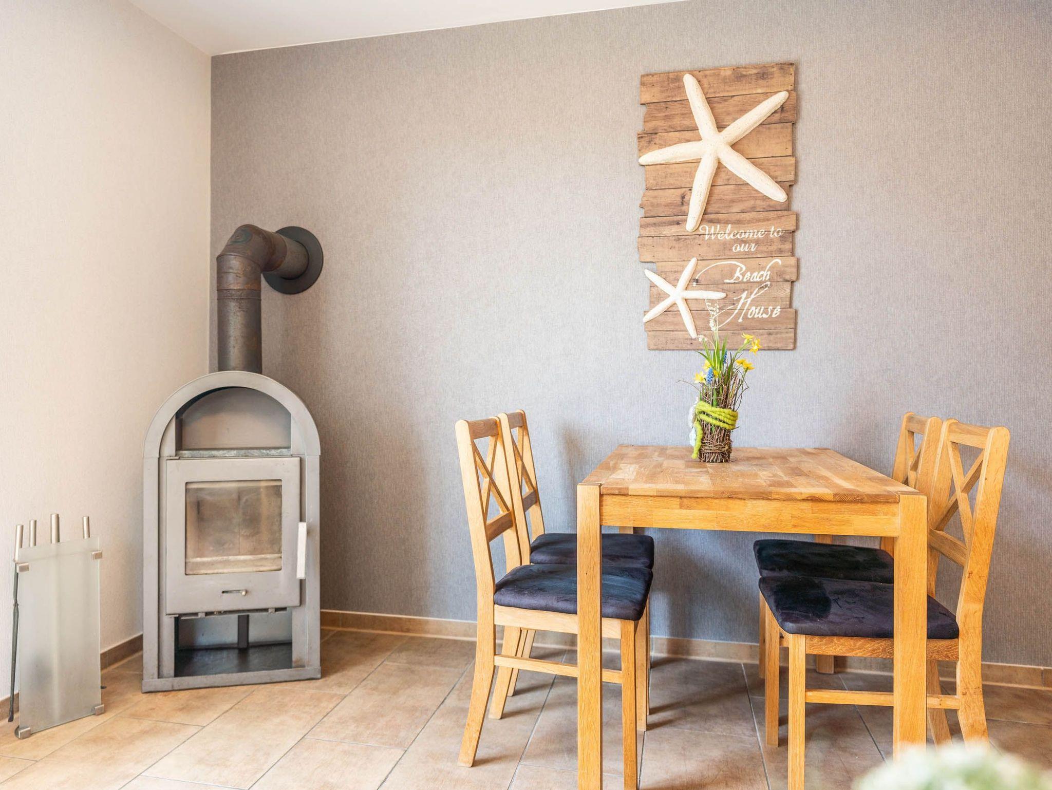 -1 Wohnzimmer mit Schlafcouch 160 x 200 cm und Kaminofen