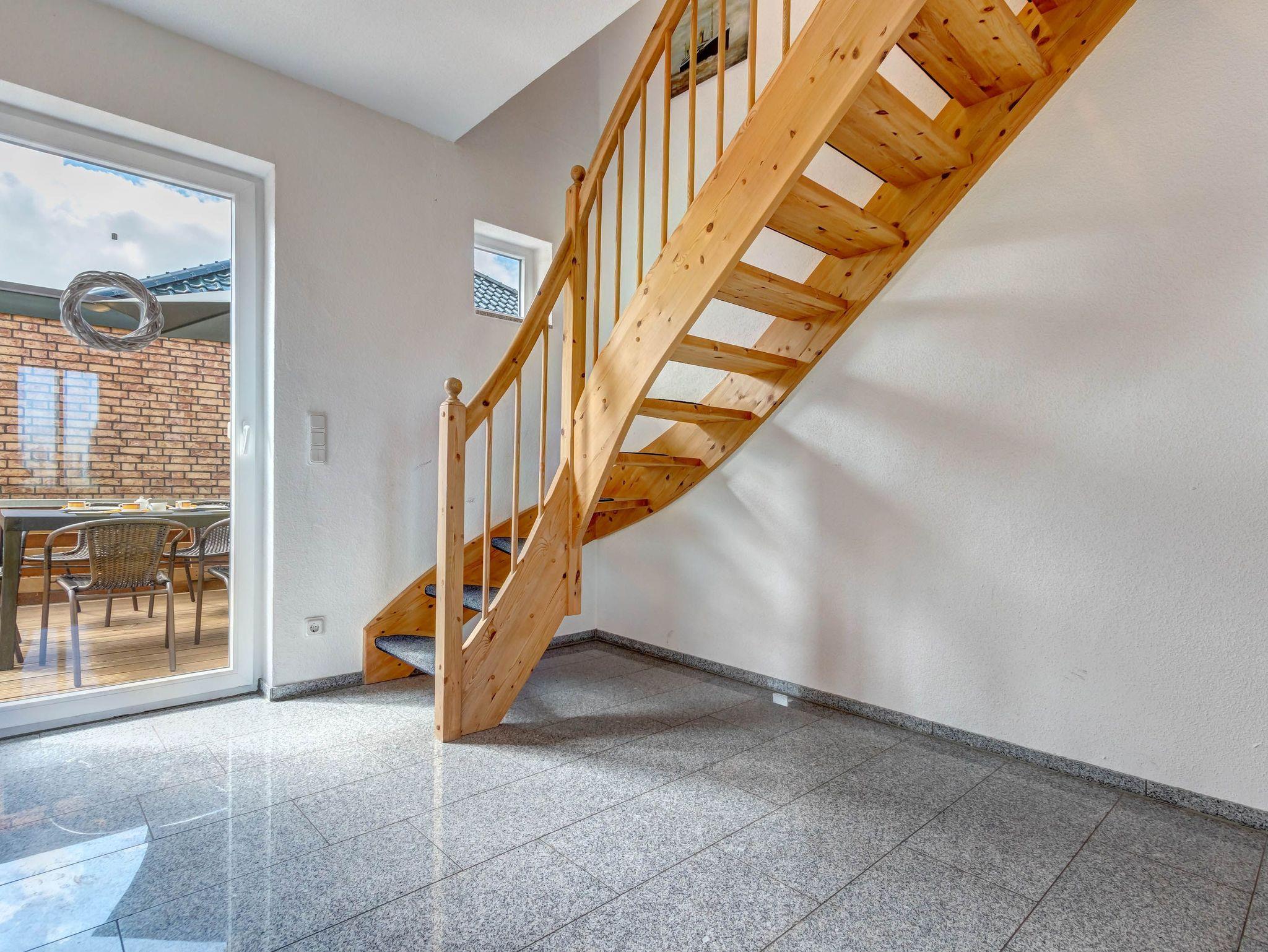 Im Obergeschoss finden Sie ein modernes Bad mit Dusche, im Erdgeschoss eine praktische Gästetoilette. Eine nach Süden ausgerichtete Terrasse und ein PKW-Stellplatz direkt neben dem Haus sorgen für zusätzlichen Komfort während Ihres Aufenthalts. Für Familien mit kleinen Kindern sind ein Kinderreisebett und ein Hochstuhl ebenfalls vorhanden.