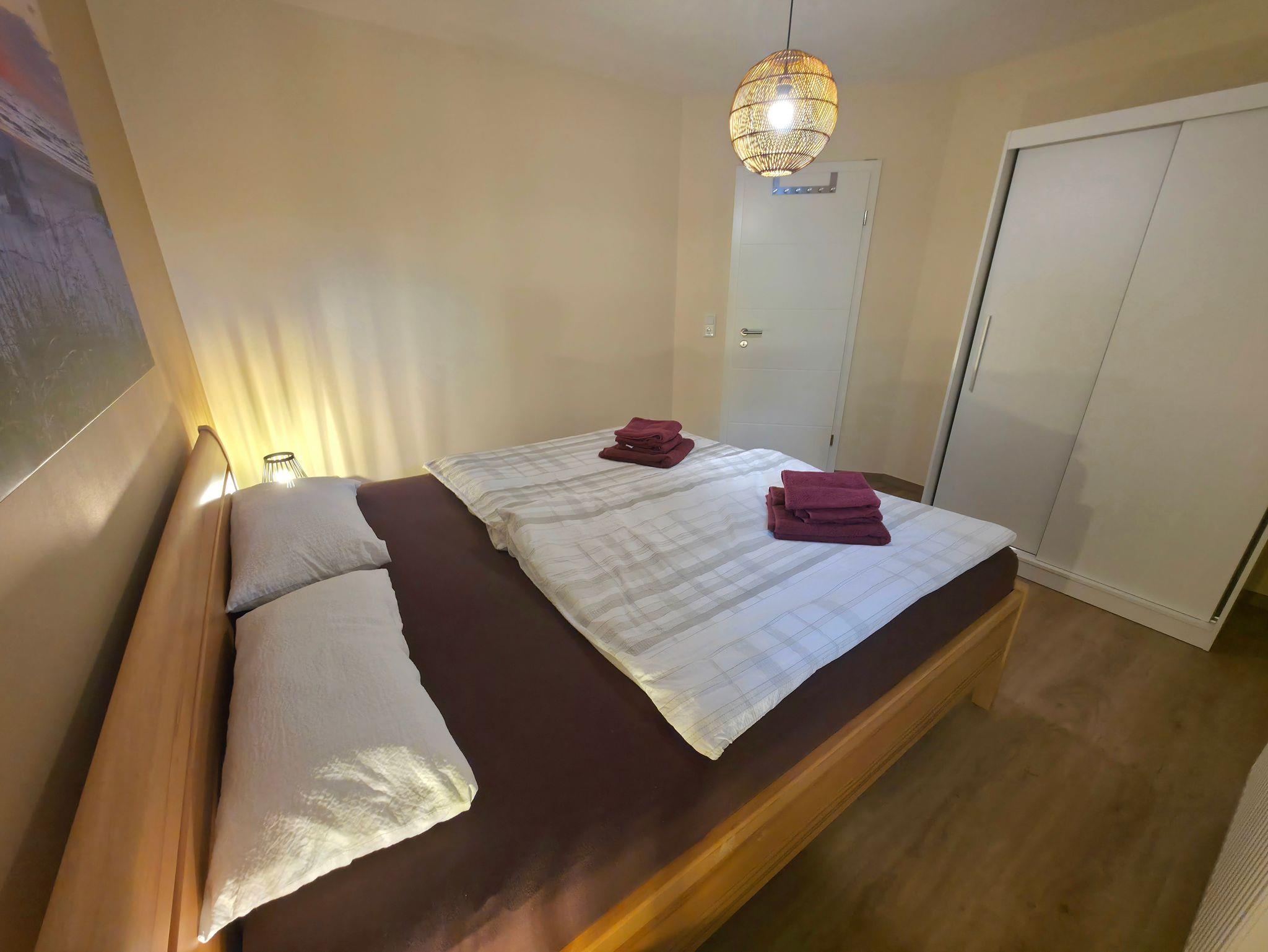 Die moderne und liebevoll eingerichtete Wohnung Olli verfügt über einen großzügigen Wohnraum, eine voll ausgestattete Küchenzeile mit Induktionskochfeld, Geschirrspüler, Toaster, Kaffeemaschine Philips Pad Maschine und Wasserkocher sowie ein komfortables Schlafzimmer mit Doppelbett (180x200 cm). Das Badezimmer mit Dusche/WC sorgt für zusätzlichen Komfort. Für schöne Stunden im Freien steht ein voll umzäunter Garten bereit, ideal zum Entspannen.