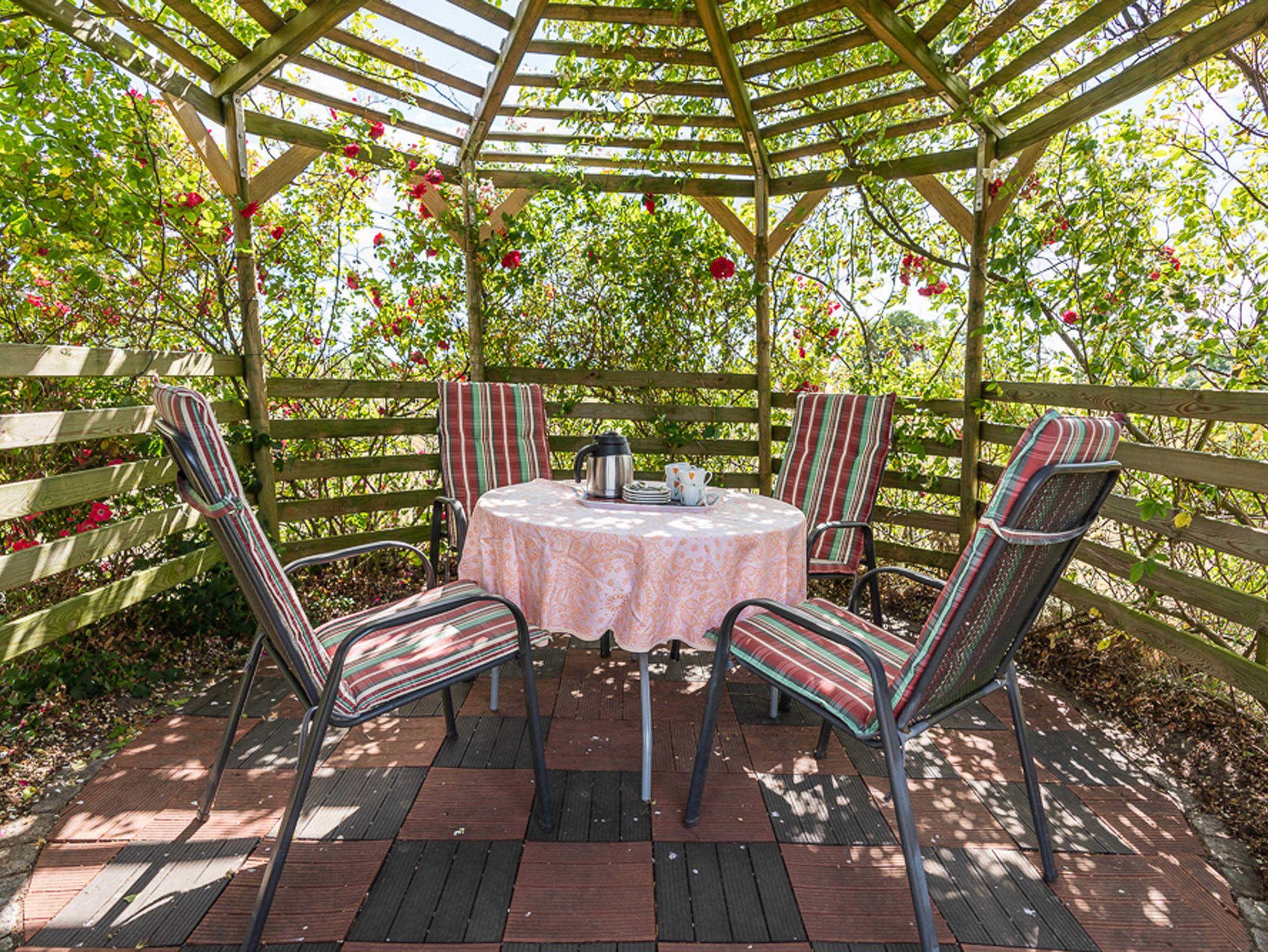 Der große Garten bietet Auslauf zum Spielen, Sitzplätze in Pavillons, Grillplätze und eine Feuerstelle für schöne Abende nach einem Tag am weißen, breiten und langen Strand.