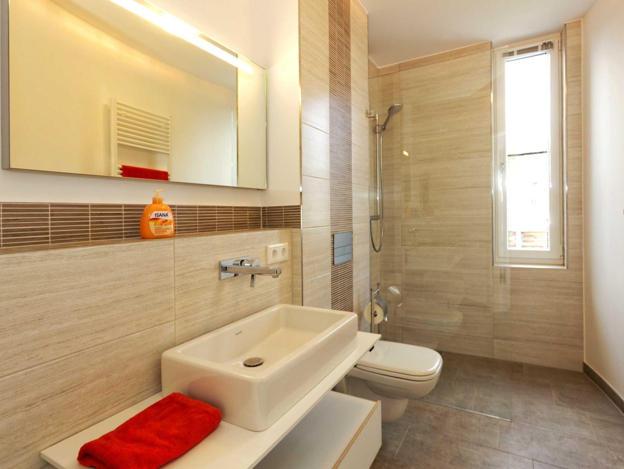 • Badezimmer mit barrierefreier Dusche und Handtuchtrockner