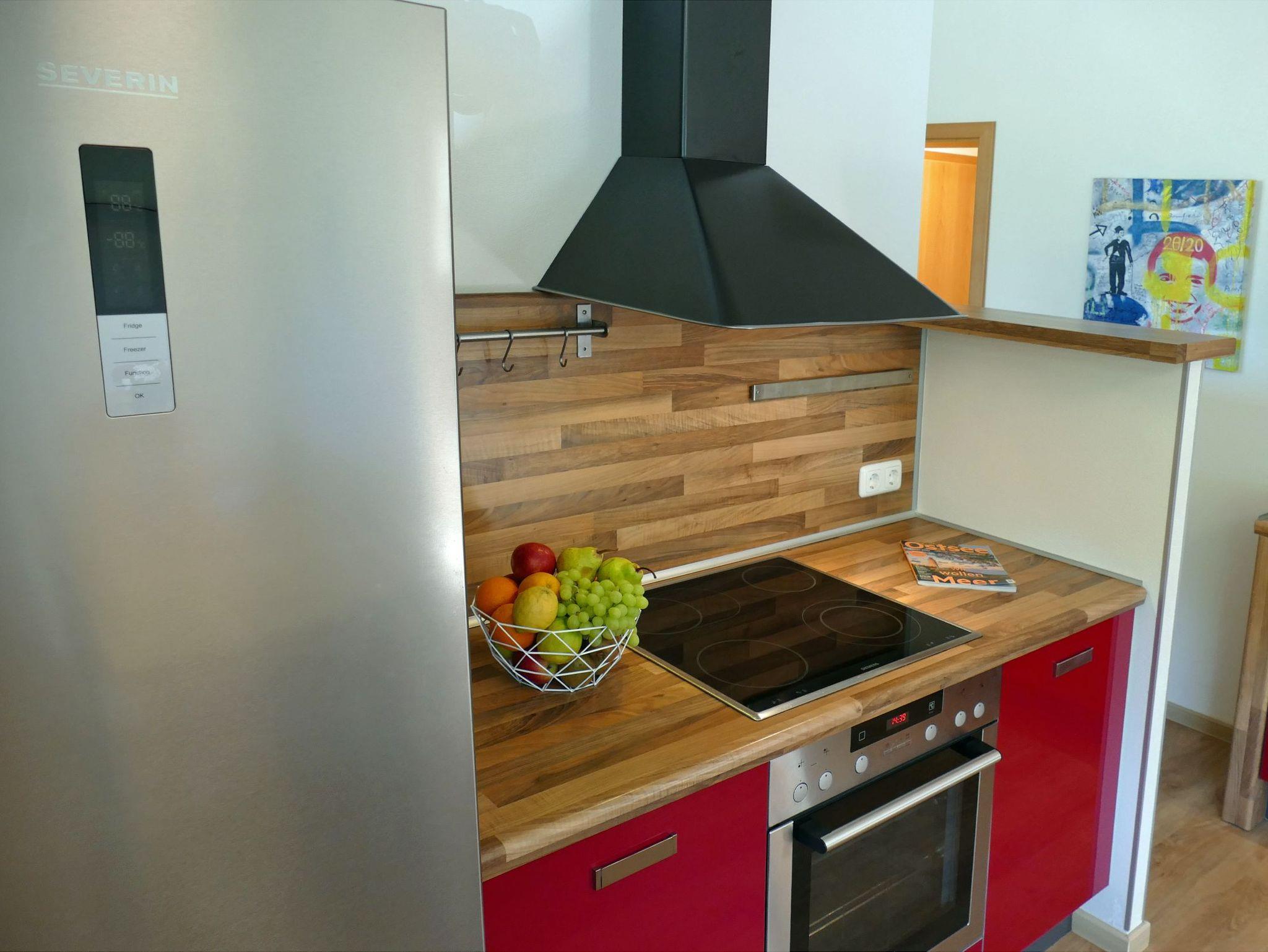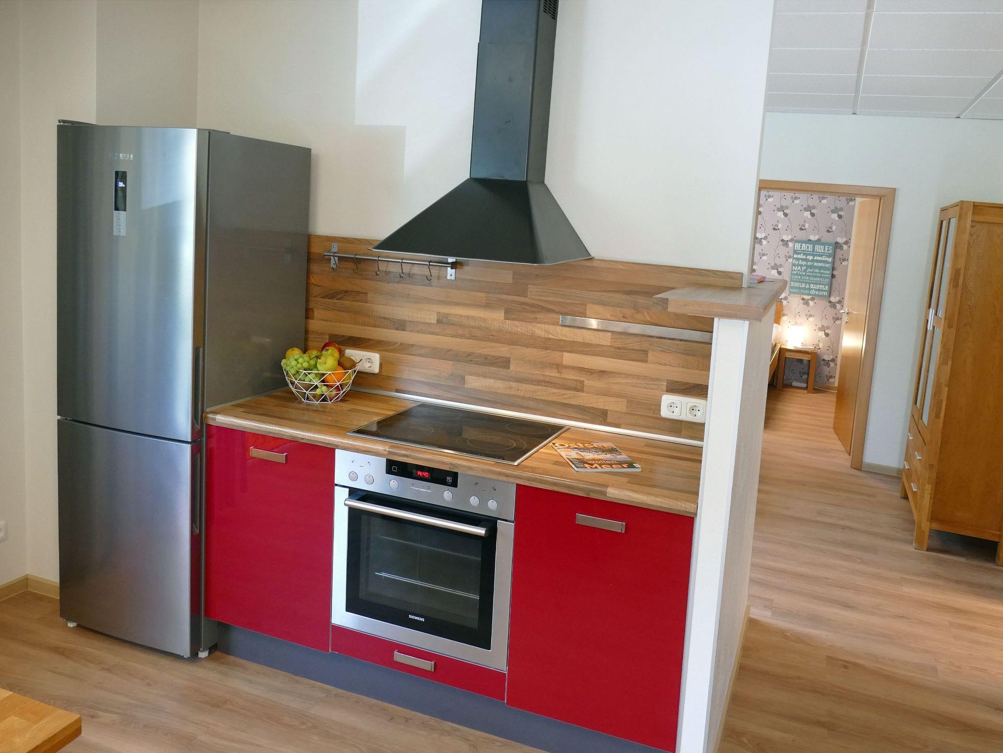 voll ausgestattete Küche mit Geschirrspüler, Herd und Backofen, Kaffeemaschine, Wasserkocher, Geschirr und Besteck u.v.m.