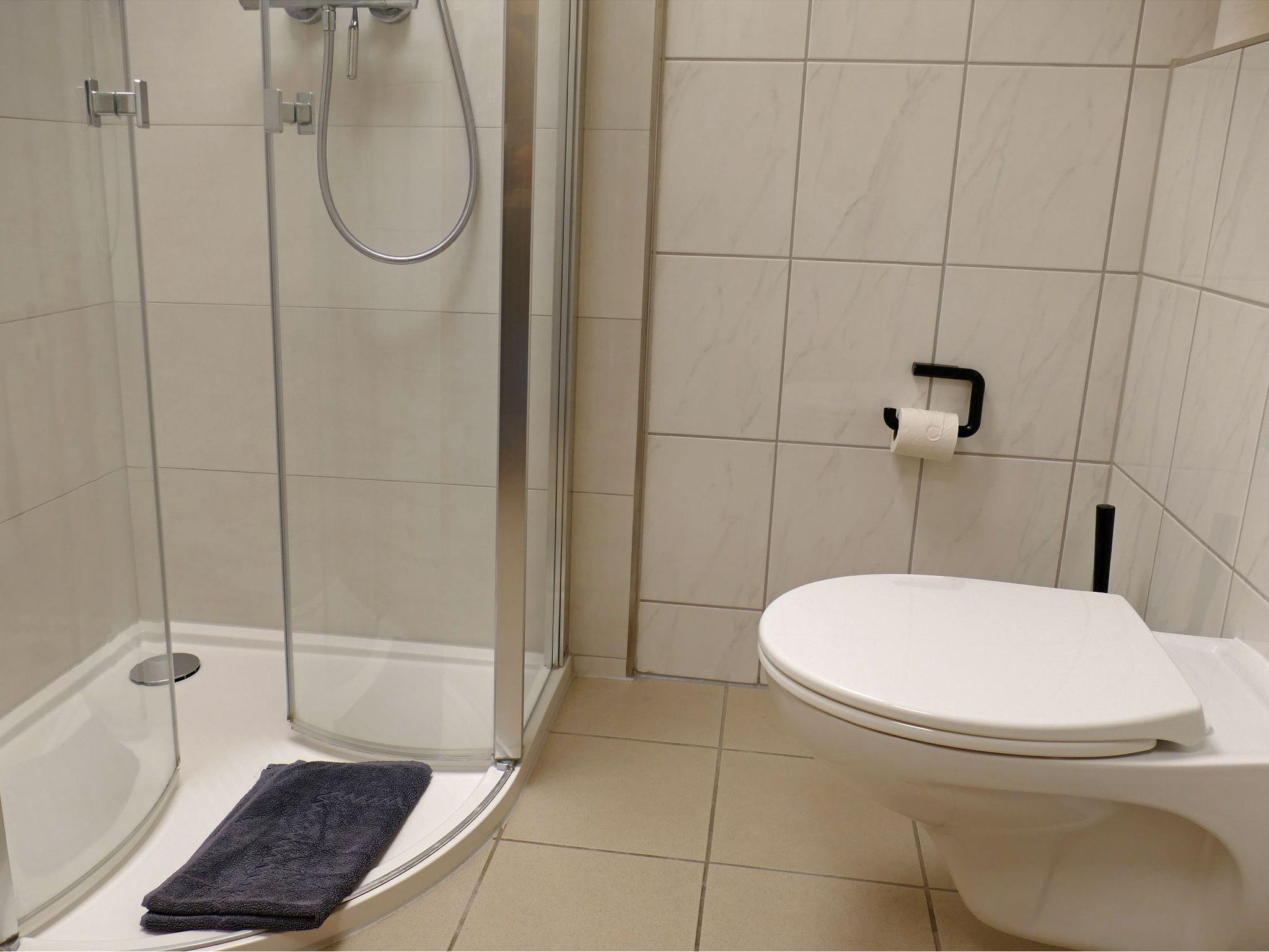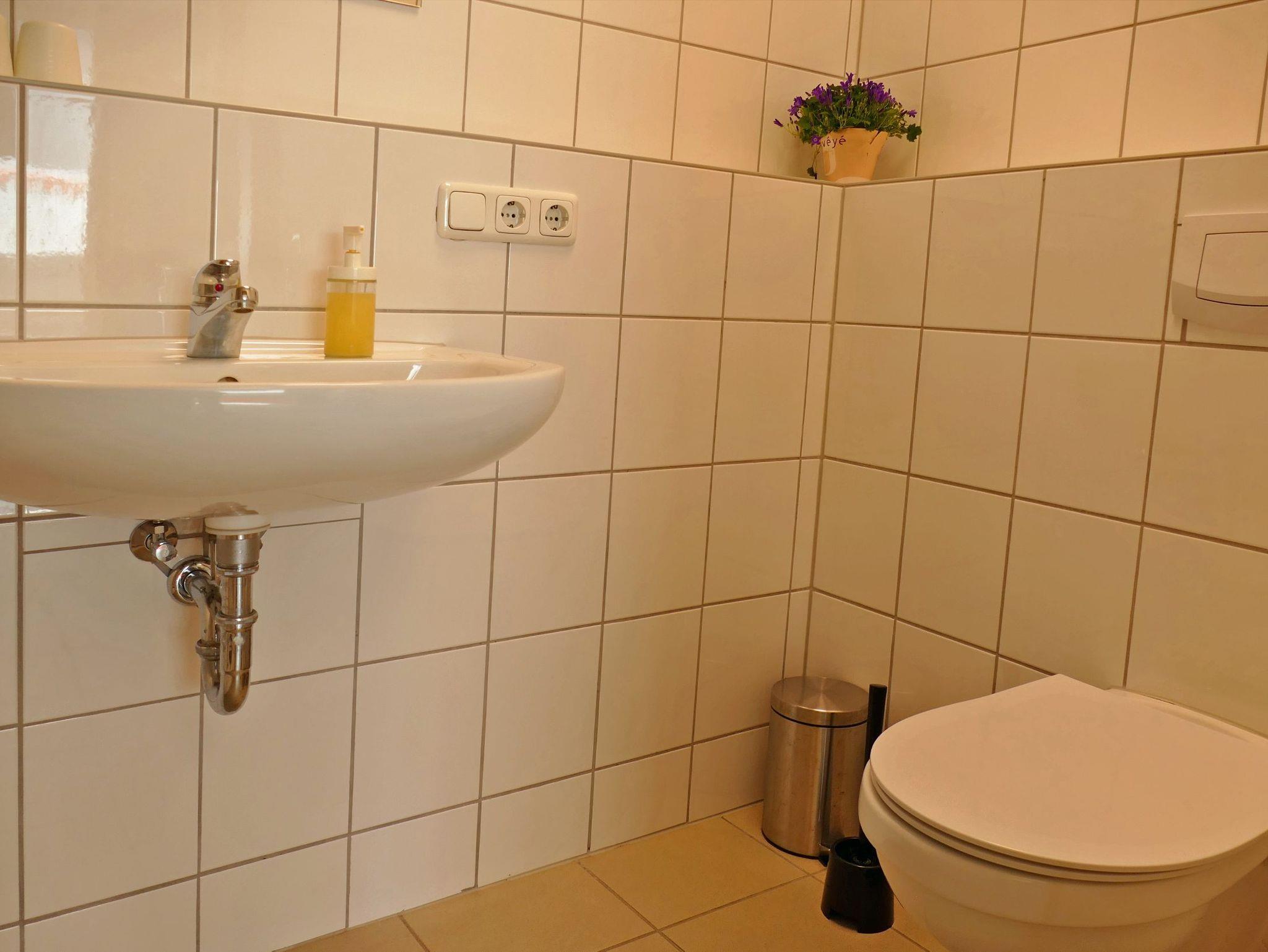 Ein zusätzlicher Schlafraum mit 2 möglichen Aufbettungen und eigenem kleinem Duschbad mit Toilette wird bei Buchungen mit mehr als 3 Personen für Sie geöffnet.