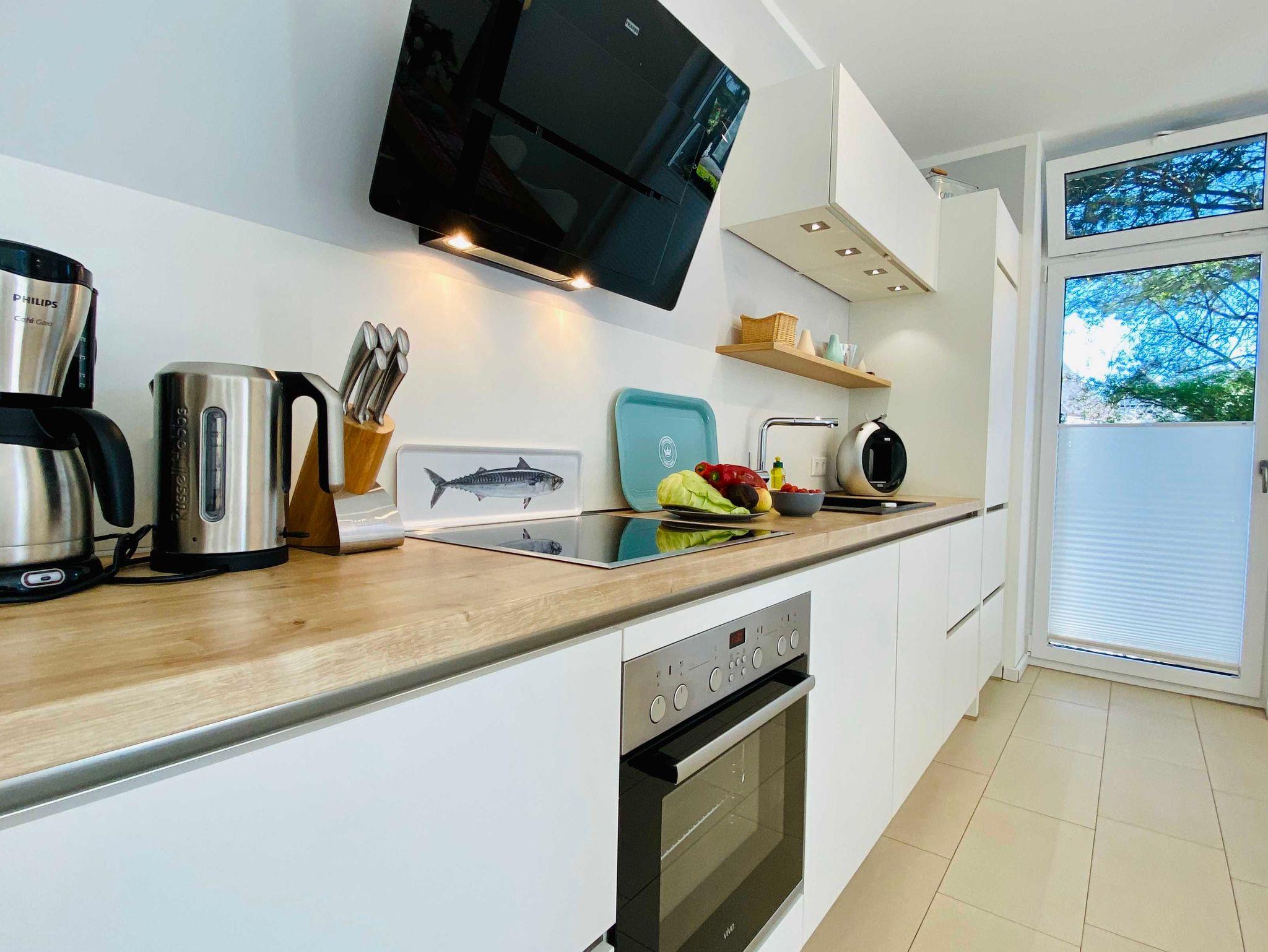 Die tolle und moderne 3 Raumwohnung Koje 2 mit ca. 80m² hat einen treppenlosen Zugang und ist für Senioren und Familien mit Kindern gleichermaßen geeignet. Zur Ferienwohnung gehört ein großer Wohnbereich mit integrierter Küchenzeile und ein Zugang zur schönen Terrasse und 400m² Gartengrundstück . Die Wohnung hat zwei Schlafzimmer mit Doppelbetten und ein Badezimmer mit Dusche und Wanne. Es gibt einen eigenen Abstellraum mit Waschmaschine. Der Stellplatz befindet sich gleich vor der Tür. Internet steht Gästen kostenfrei zu Verfügung.