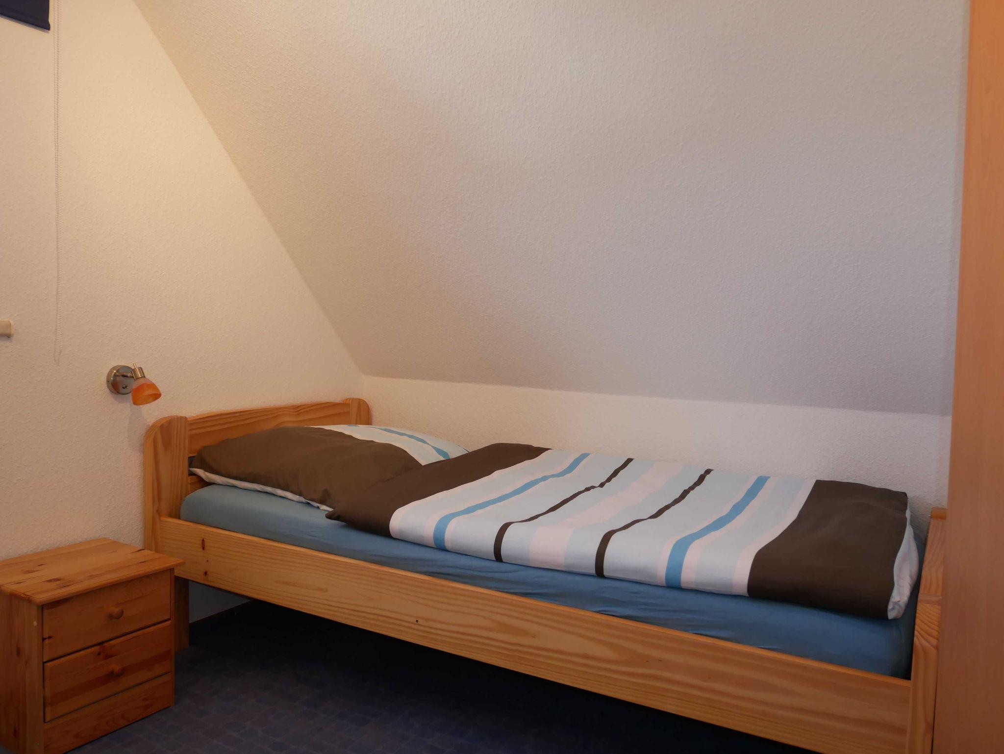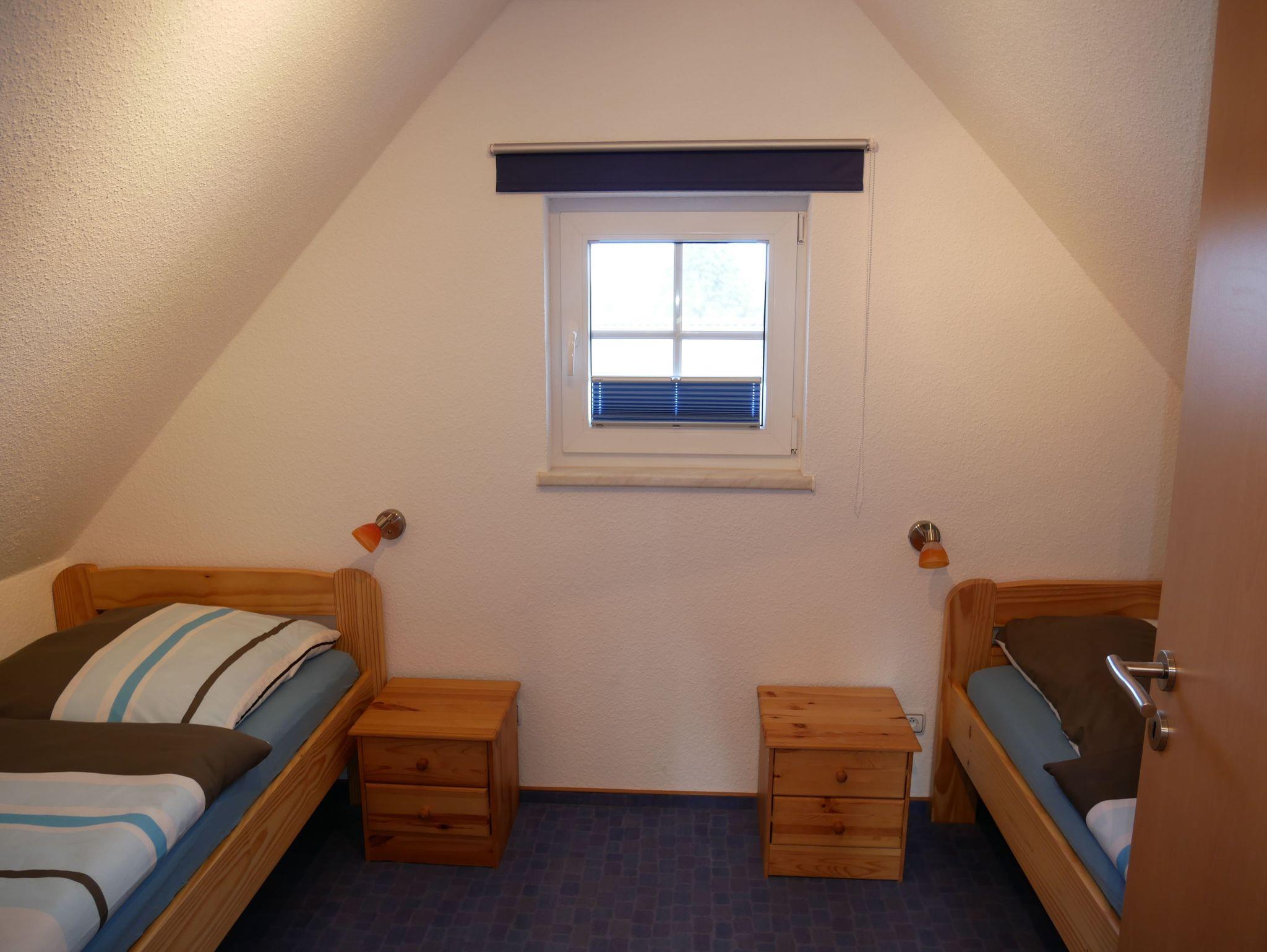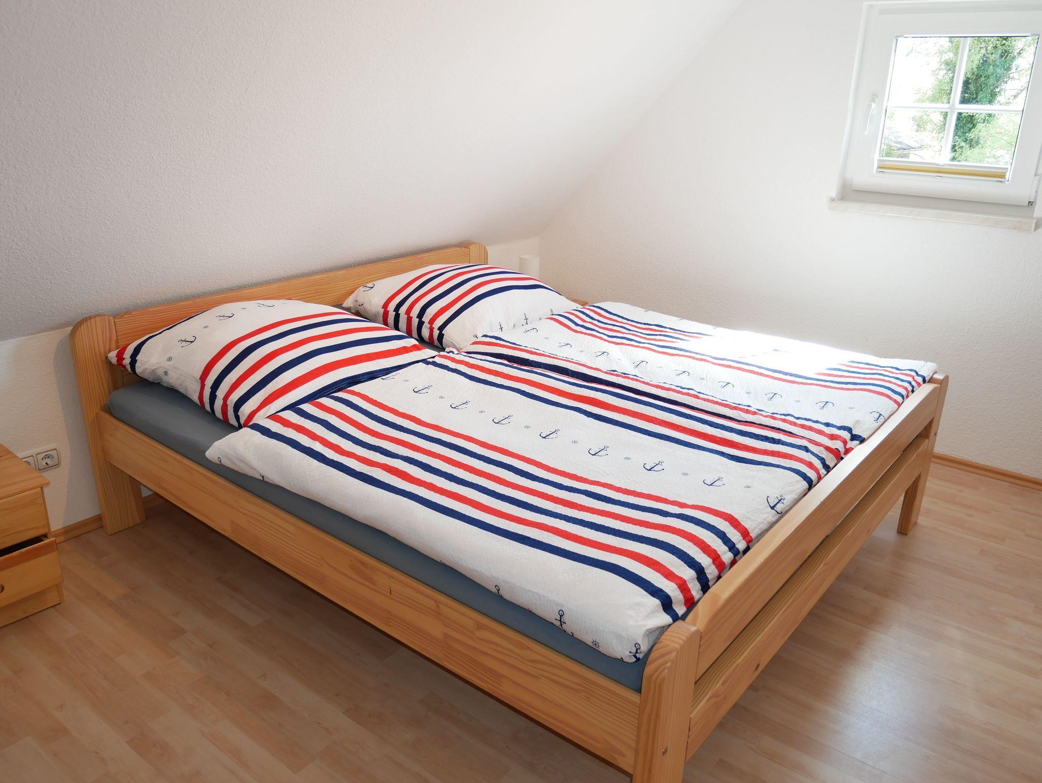Im Obergeschoß befinden Sich die Schlafzimmer. Das große Schlafzimmer ist mit einen Doppelbett und das kleine mit 2 Einzelbetten ausgestattet. Die Treppe kann im oberen Stockwerk mit einem Treppenschutzgitter versehen werden.