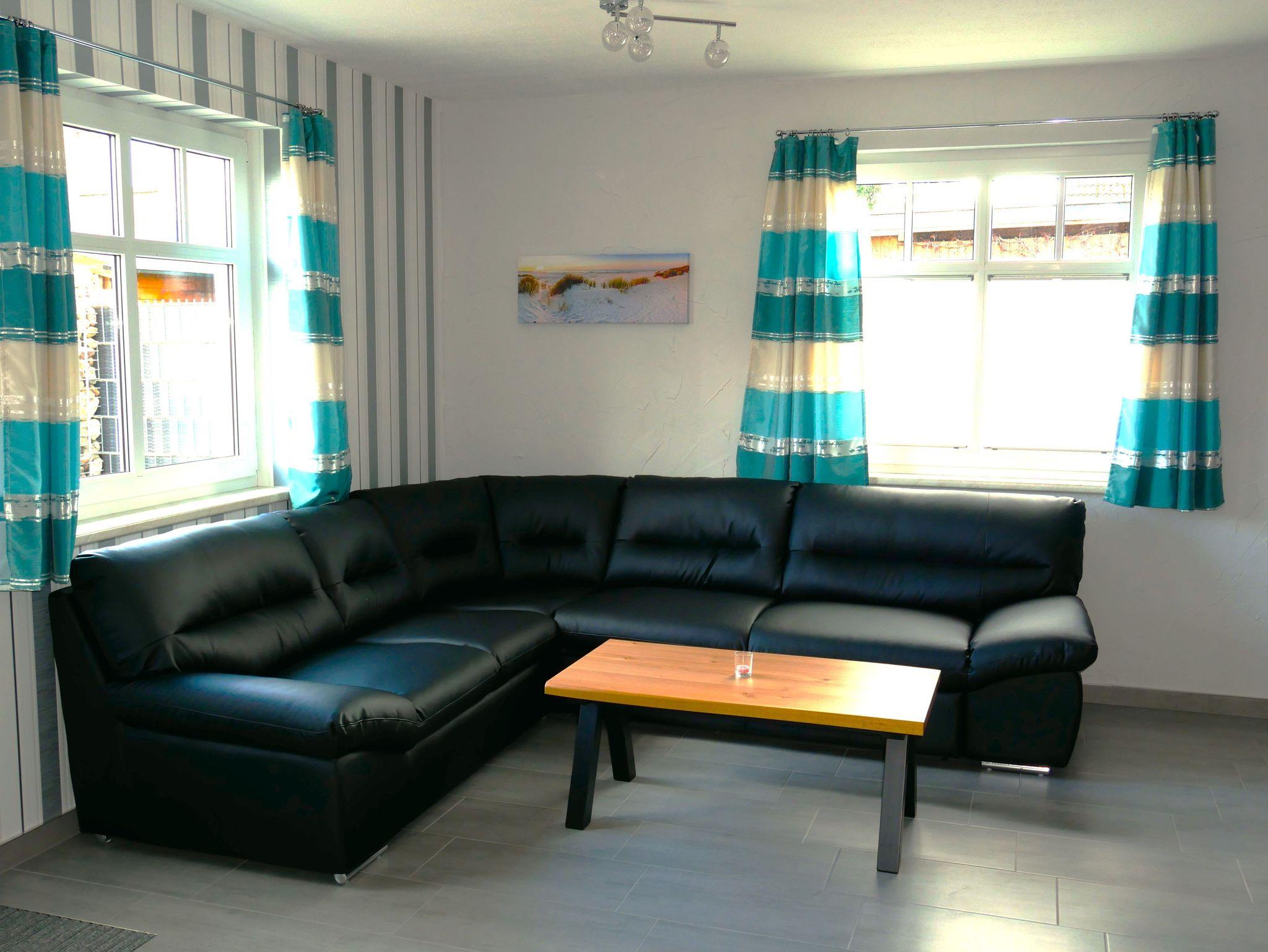 Im Erdgeschoß erwartet Sie das geräumige Wohnzimmer mit offenem Küchenbereich, einer Wohnlandschaft aus Leder, Flachbild TV, CD und DVD-Player.