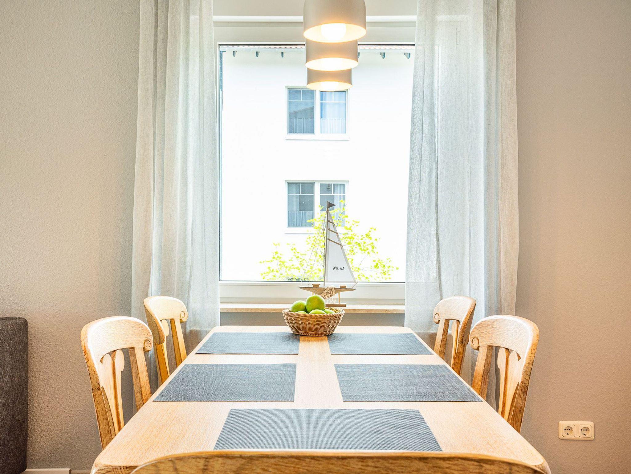 Der behagliche Wohnraum mit einer gemütlichen Sitzecke und einem Fernseher, sowie die komplett eingerichtete, offene Küche bieten einen guten Ort um sich gemeinsam in der Wohnung zu entspannen. Durch die zwei Schlafzimmer, gibt es jedoch auch einen ruhigen Rückzugsort um abzuschalten. Ein Schlafzimmer ist mit einem Doppelbett ausgestattet und eins mit zwei Einzelbetten. Das Badezimmer besitzt eine Dusche und ein WC. Auf dem Balkon können Sie gemütlich den Abend ein- und ausklingen lassen. WLAN ist vorhanden. Waschmaschine und Trockner können Sie gegen Entgelt verwenden. Natürlich stellen wir Ihnen ein PKW-Parkplatz vor dem Haus zur Verfügung. Zum feinsandigen, weißen Badestrand sind es nur ca. 3-4 Gehminuten.