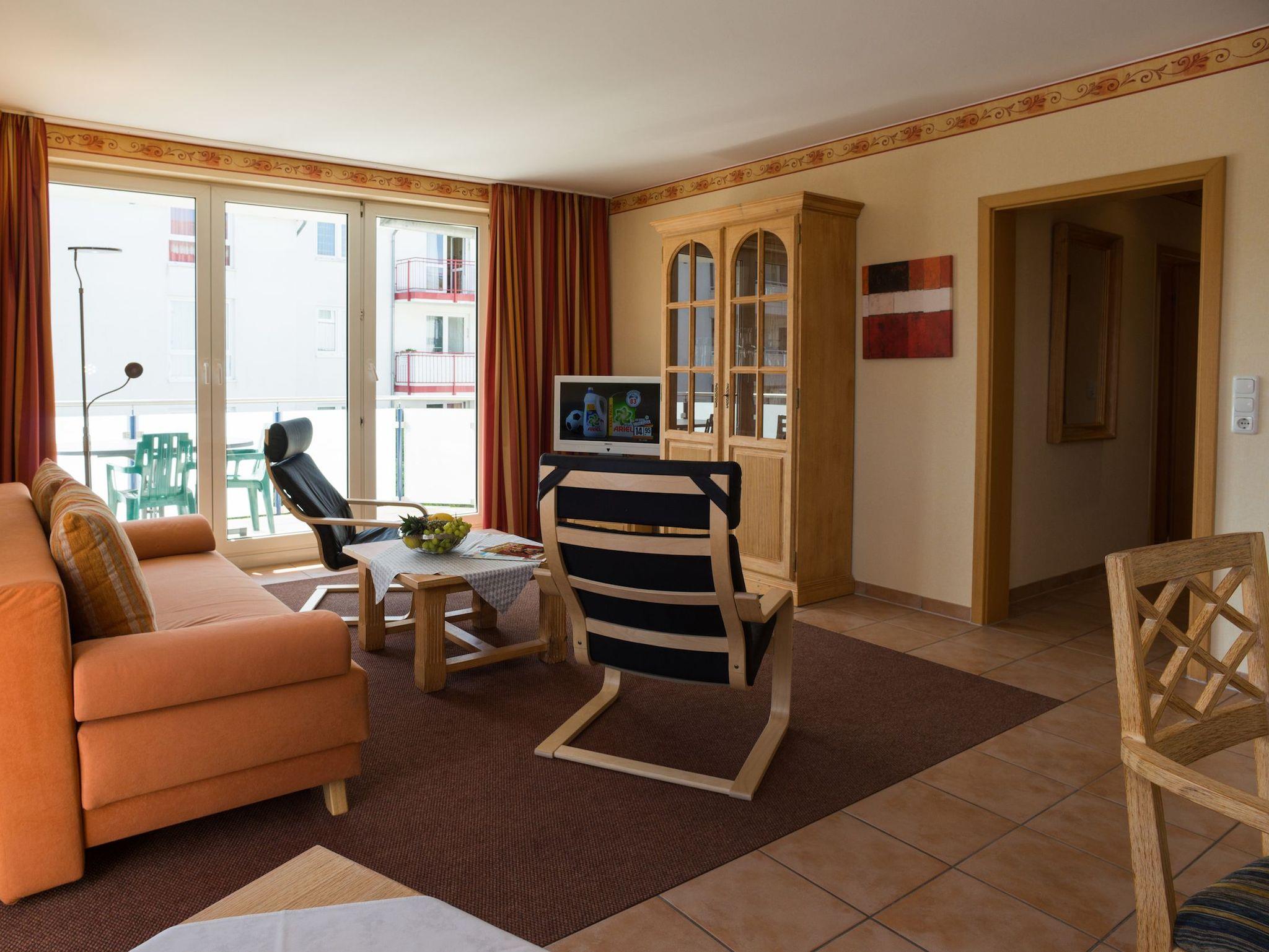 Mit zwei separaten Schlafzimmern, einem großzügigen Wohn- und Küchenbereich sowie einem einladenden Balkon oder einer Terrasse mit Gartenmöbeln lädt die Wohnung zum Entspannen ein. Der helle Wohnbereich ist mit einem bequemen Sofa, Kabel-TV und einer HiFi-Anlage ausgestattet perfekt für gemeinsame Abende.