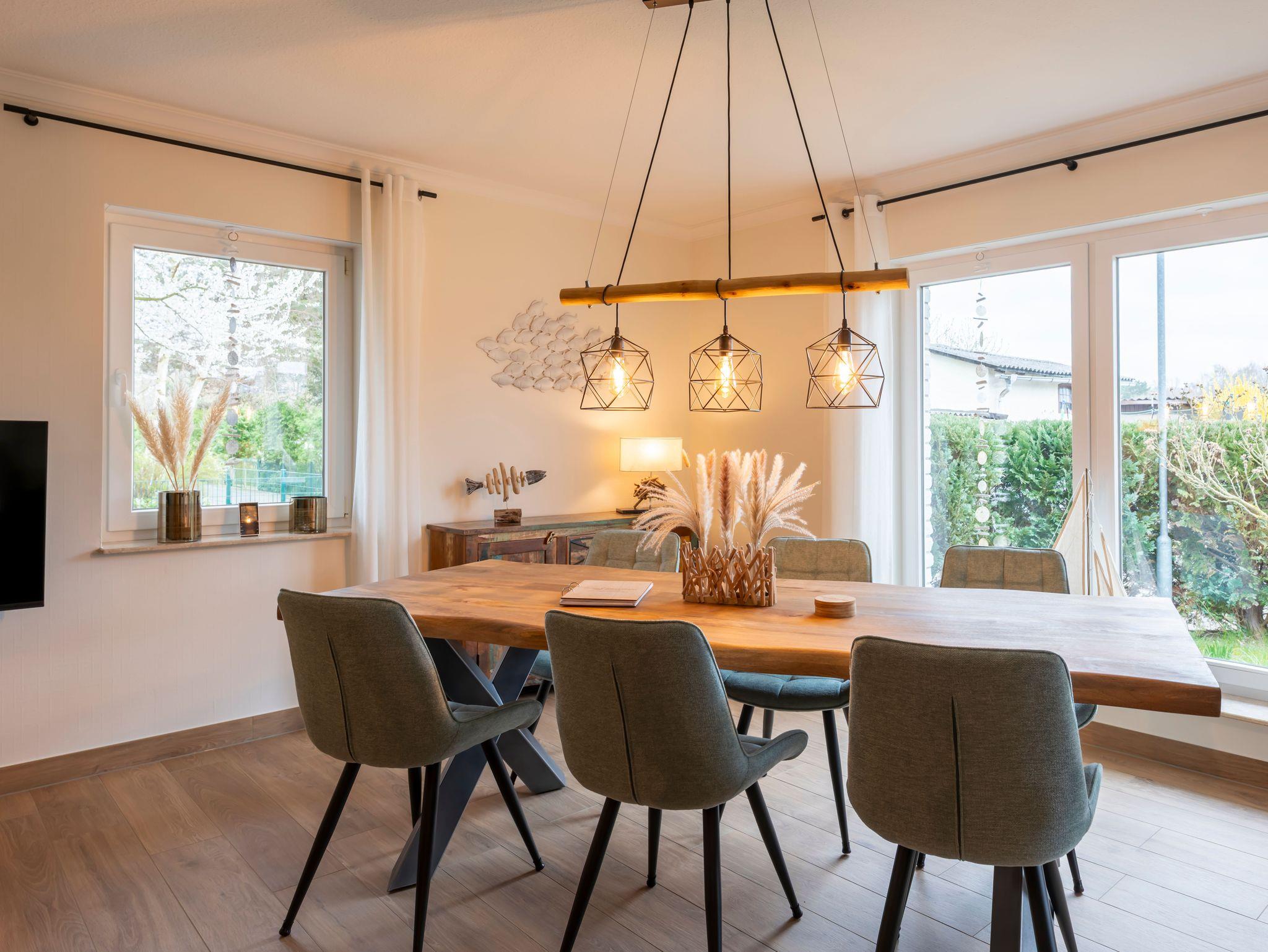 Mit 6 Personen (plus Aufbettungsmöglichkeit für 1 Kind im Kinderbett) erleben Sie hier einen ruhigen und erholsamen Urlaub. Ob Entspannung auf der überdachten Terrasse im Strandkorb, auf einer unserer Sonnenliegen im Garten oder im Winter vor dem warmen Kamin, hier finden Sie Ruhe und Erholung. Ein Grillkamin im Garten bietet die Möglichkeit auf gesellige Grillabende, vielleicht mit frisch gegrilltem Fisch aus der Ostsee (entsprechendes Grillgeschirr steht zur Verfügung).