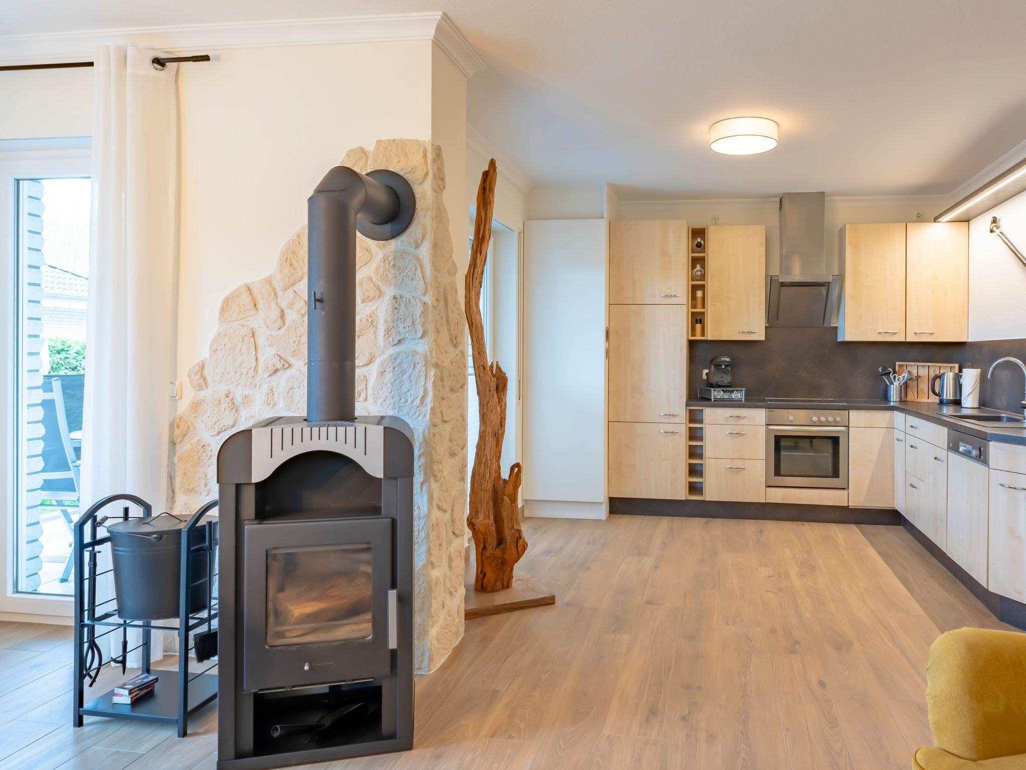 In den kühleren Monaten verfügt das gesamte Ferienhaus über eine Fußbodenheizung und ein Kamin wärmt nach einem ausdehnten Strandspaziergang.