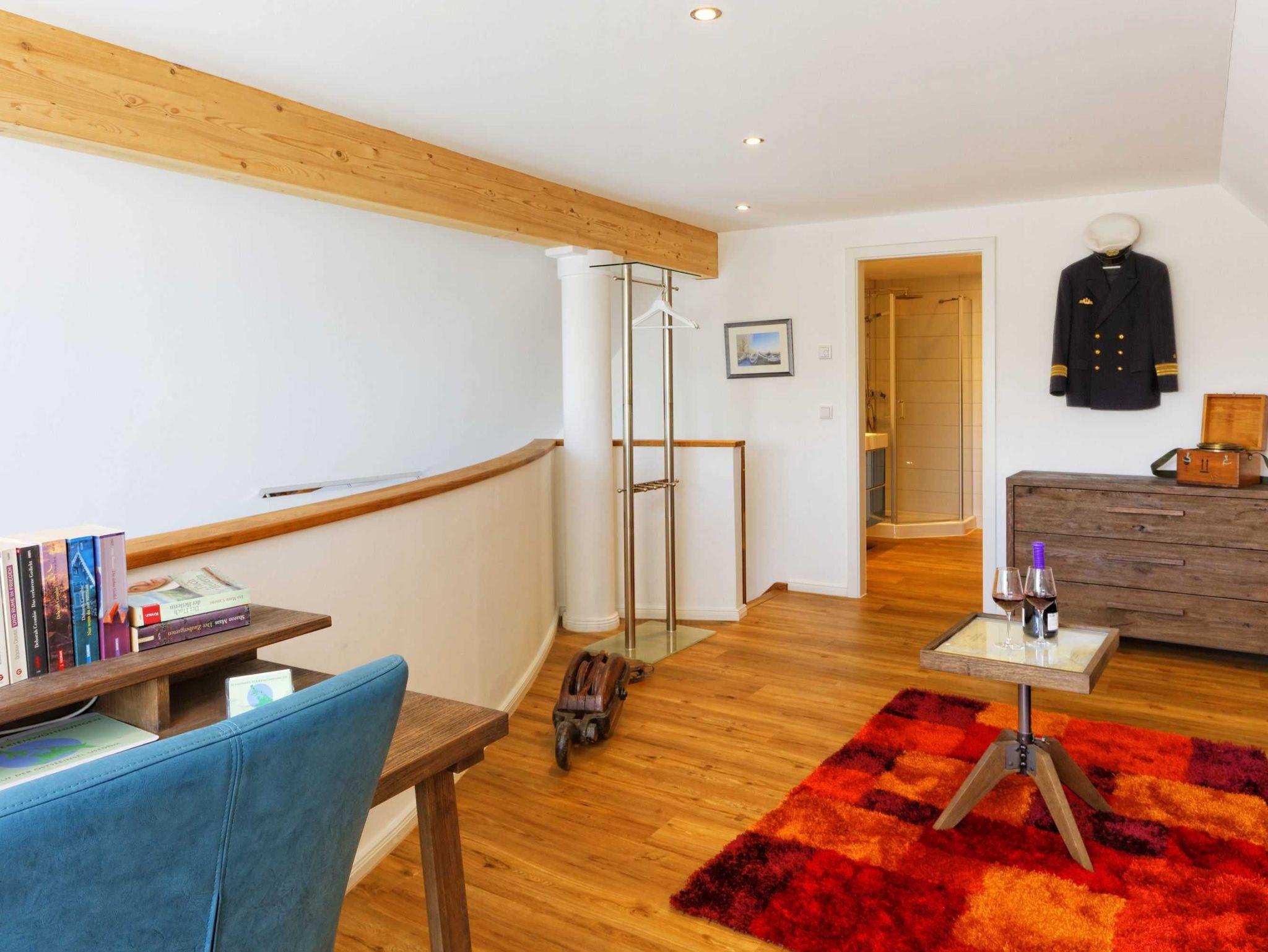 • offene Galerie im maritimen Stil mit Lesesessel und Schreibtisch