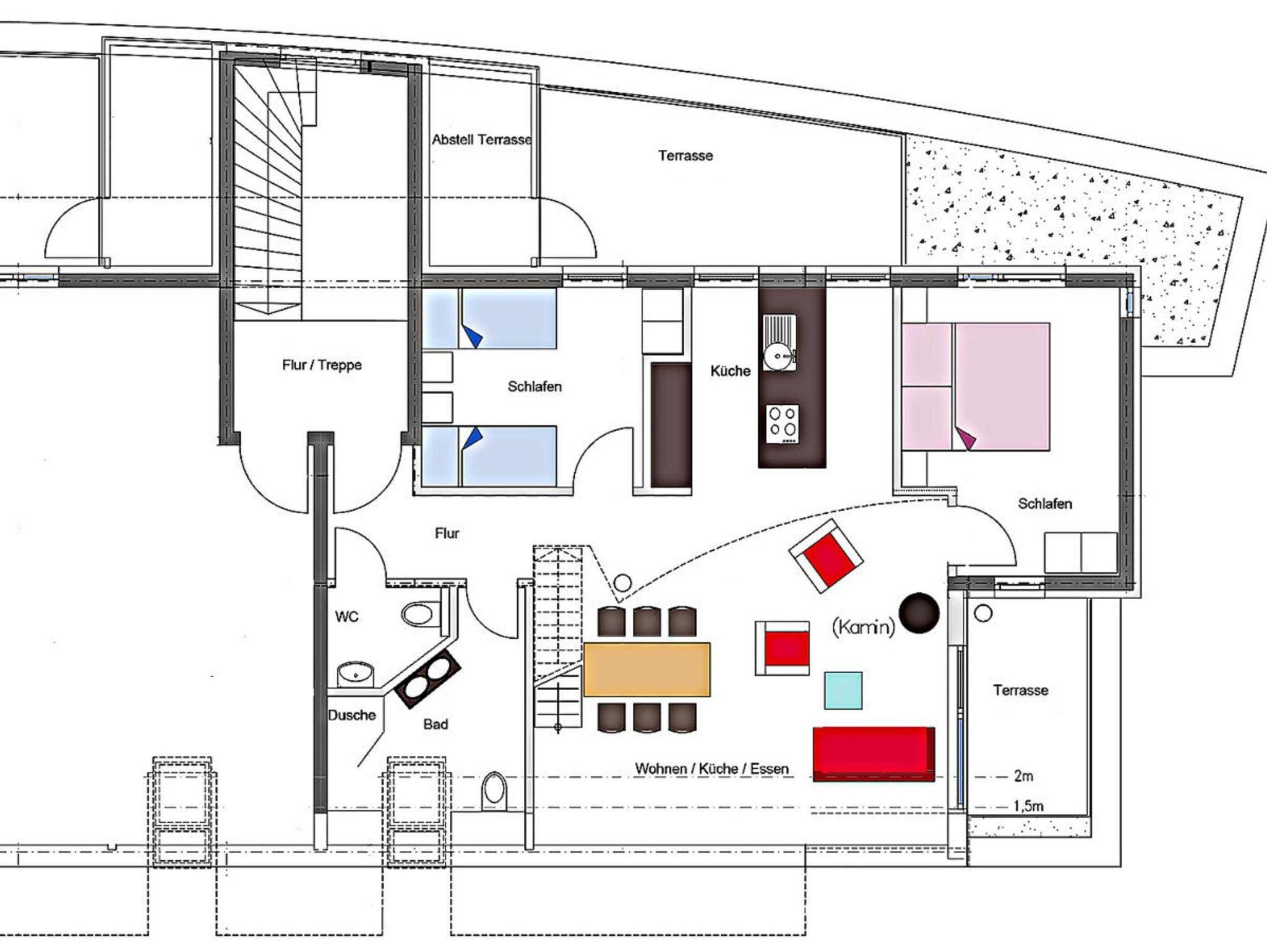 • Esstisch für 6 Personen, gemütliche Sitzgruppe, Couchtisch, Kamin, Flachbildfernseher mit DVD-Player, Internet-WLAN