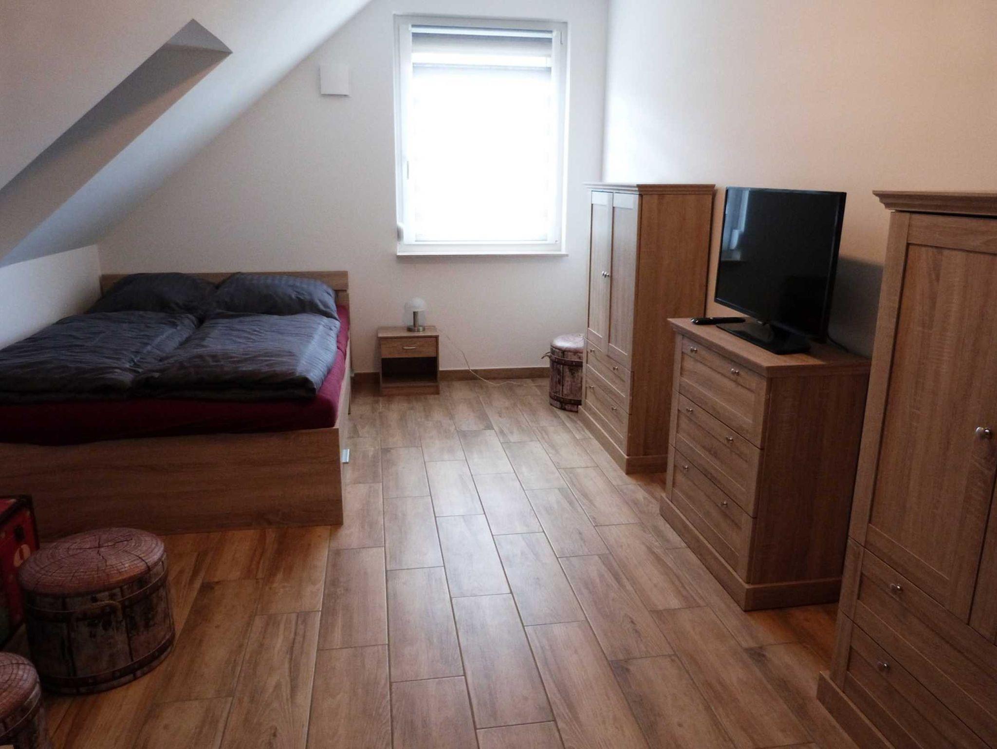 - 1 Schlafzimmer mit 1 Doppelbett 180 x 200 cm im Erdgeschoss,