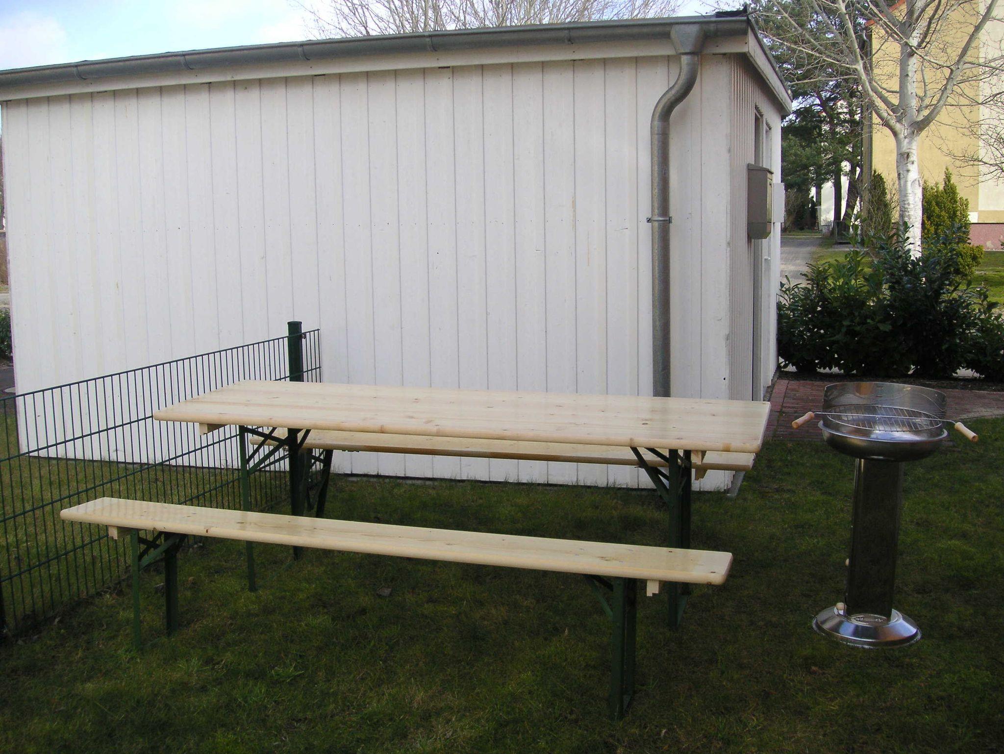 Auf dem großen, überdachten Balkon kann man gemütlich frühstücken, sich in der Sonne aalen oder am Abend bei einem Glas Wein die Seele baumeln lassen. Zur Wohnung gehört ein eigener Autoabstellplatz. Ein Abstellraum für Fahrräder ist ebenfalls vorhanden. Im Abstellraum befindet sich eine Biertischgarnitur und ein Grill (von den Gästen zu reinigen), so dass im Garten auch gegrillt werden kann.