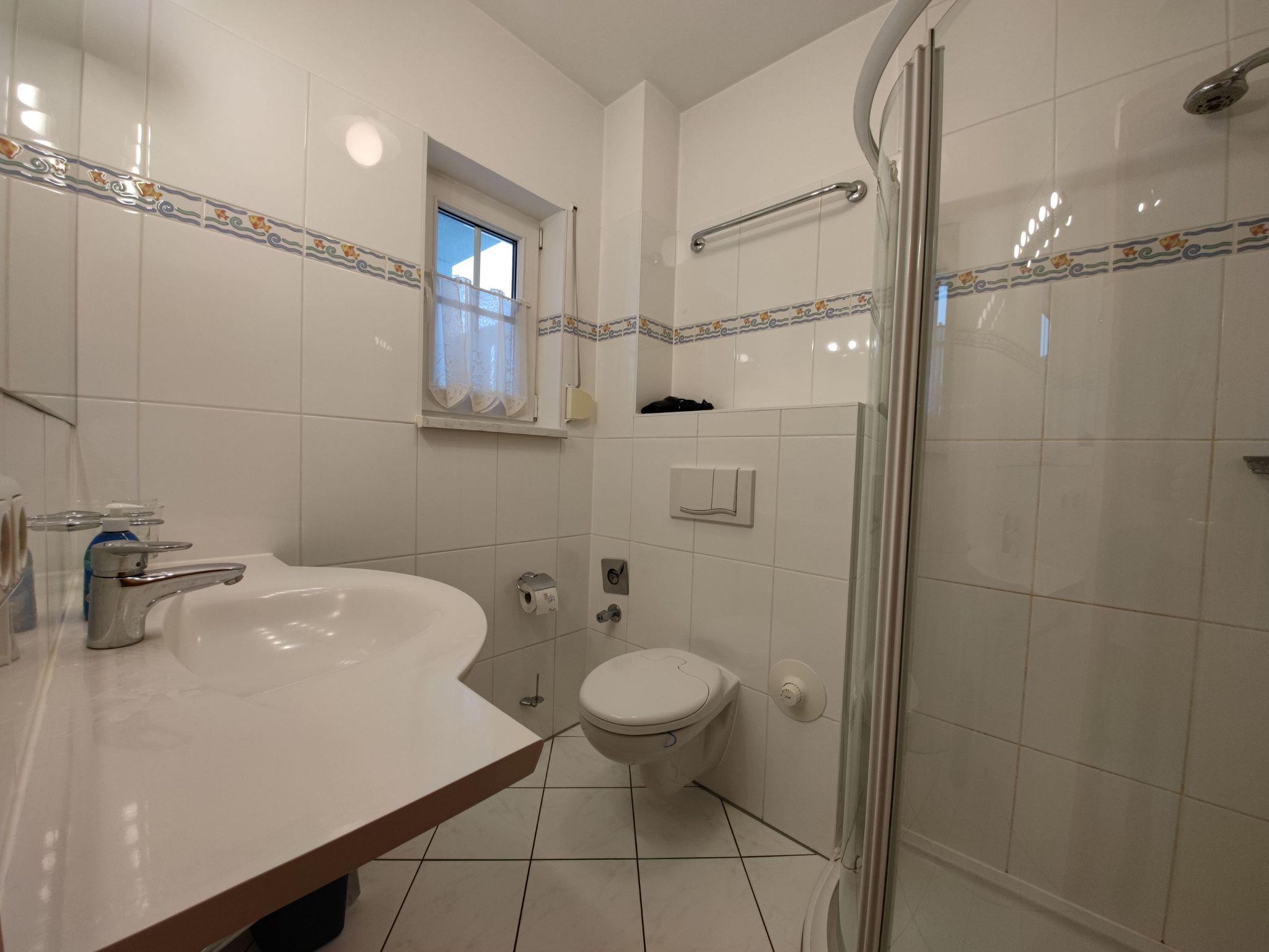 Das Bad ist mit Dusche und WC und einer Fußbodenheizung ausgestattet. Im Schlafzimmer finden sich ein Doppelbett, ein Schrank sowie weitere Ablagemöglichkeiten.