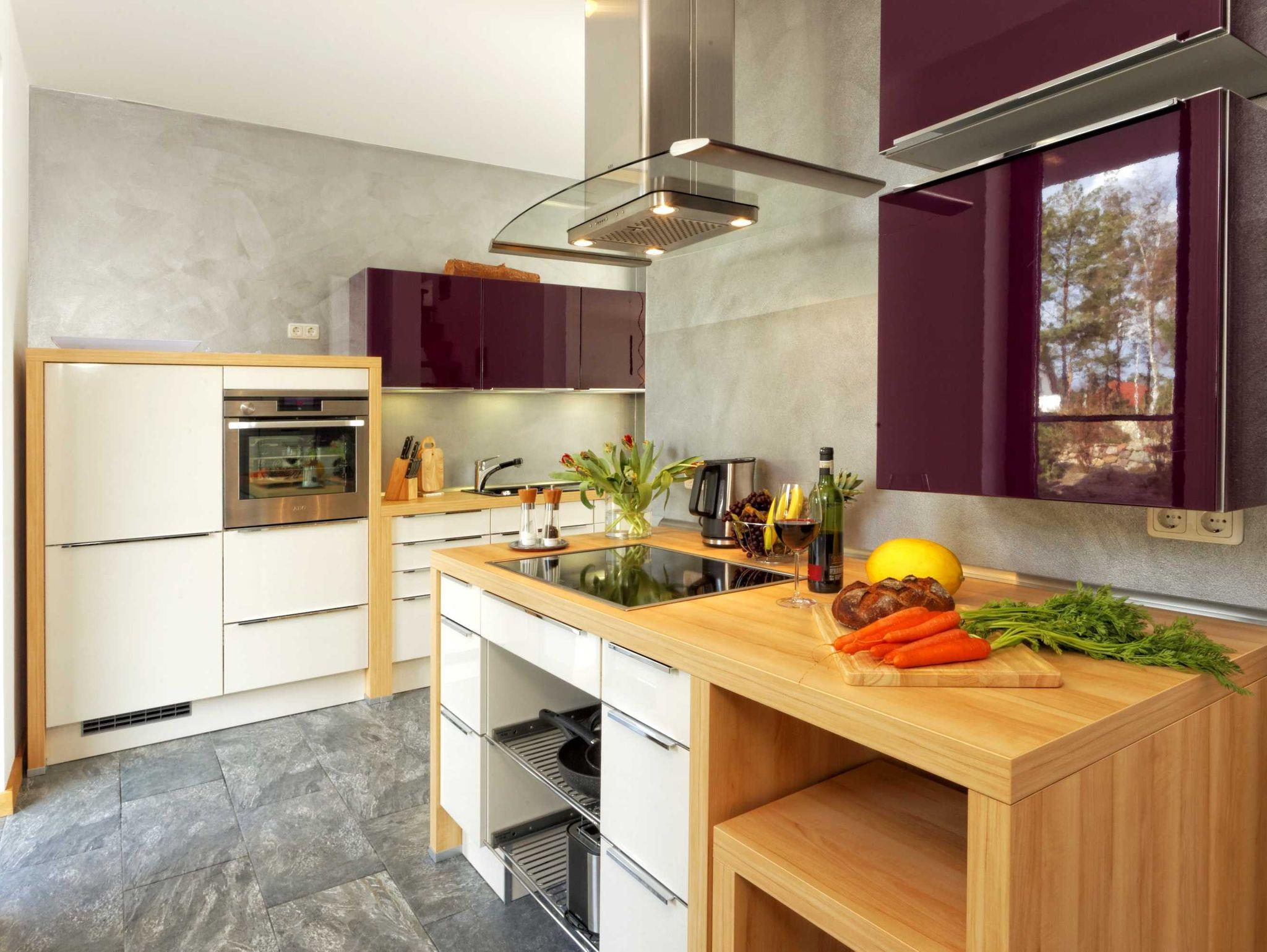 • offene Einbauküche mit Geschirrspüler, Induktionsherd, Dampfgarer, Kühlschrank, Kaffeemaschine, Toaster und Wasserkocher