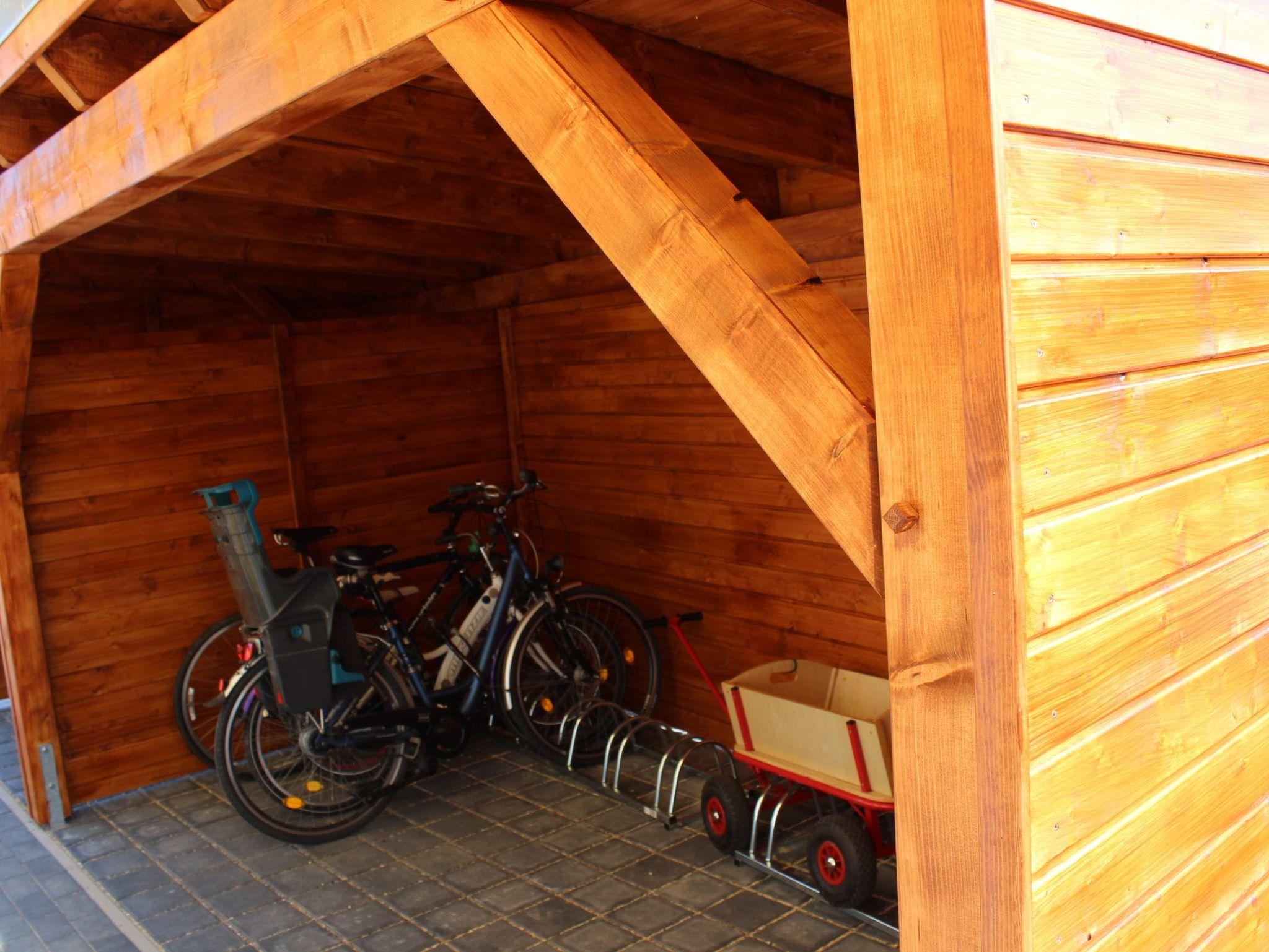 Mitgebrachte Fahrräder können in dem Fahrradunterstand geschützt geparkt und angeschlossen werden. Jeder Wohnung steht mindestens 1 PKW-Stellplatz auf dem Hof zur Verfügung. Bei Anreise mit mehreren Fahrzeugen ist ausreichend Platz vorhanden. Lassen Sie Ihren PKW stehen! Die Parkplätze in und um Karlshagen sind gebührenpflichtig.