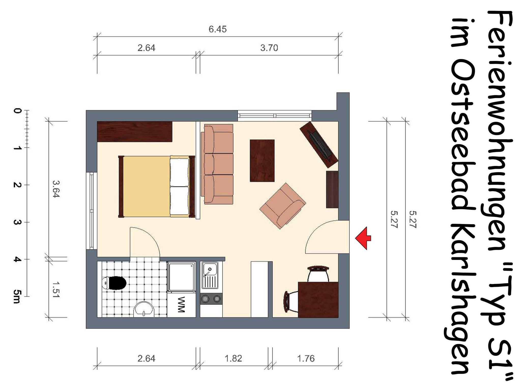 Ein-Raum-FeWo Typ S1 (ca. 35 ) im EG im Ferienhaus Strandstraße 24