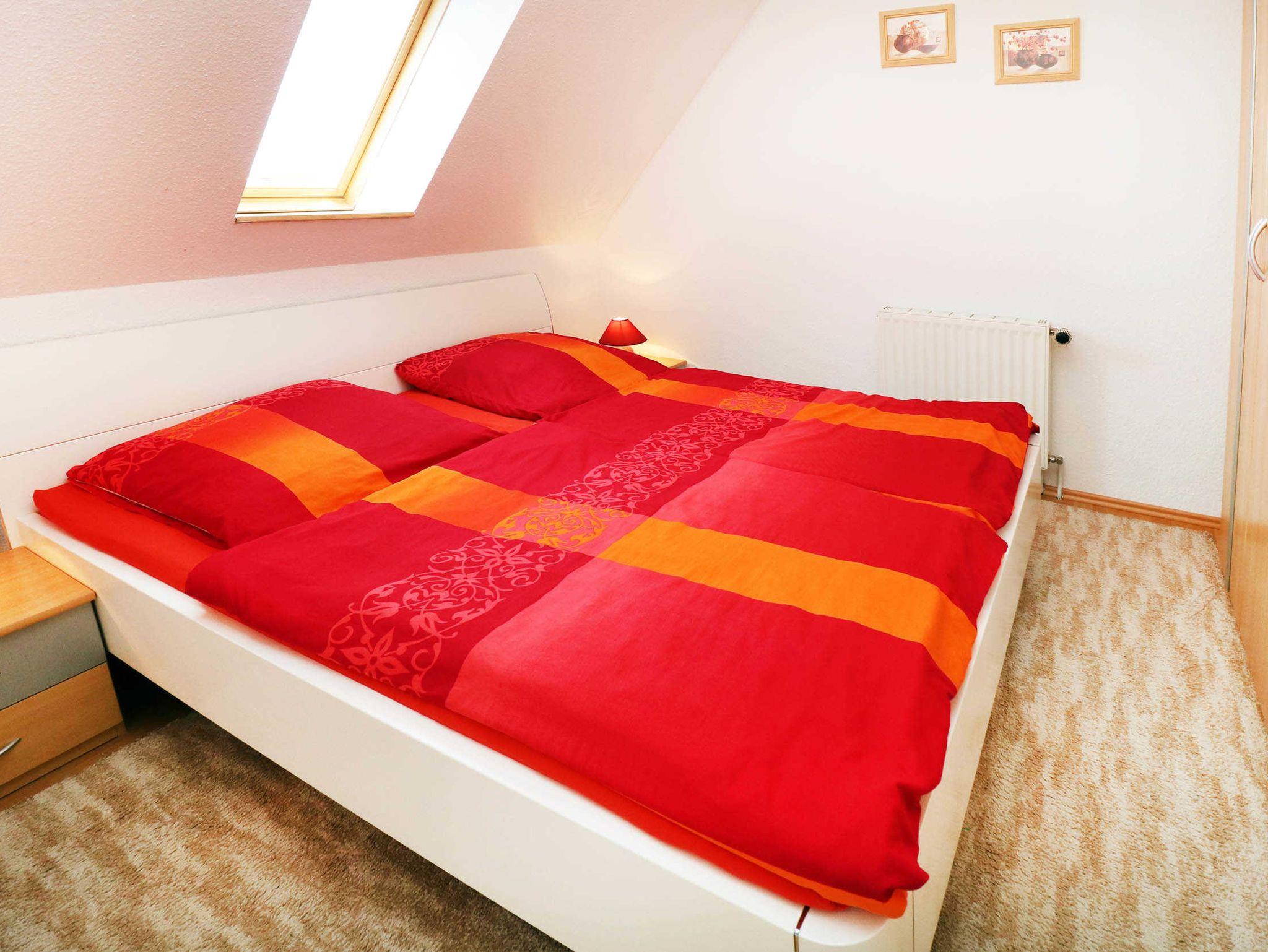 Ferienwohnung mit 2 Schlafzimmer mit jeweils einem Doppelbett und großem Balkon.