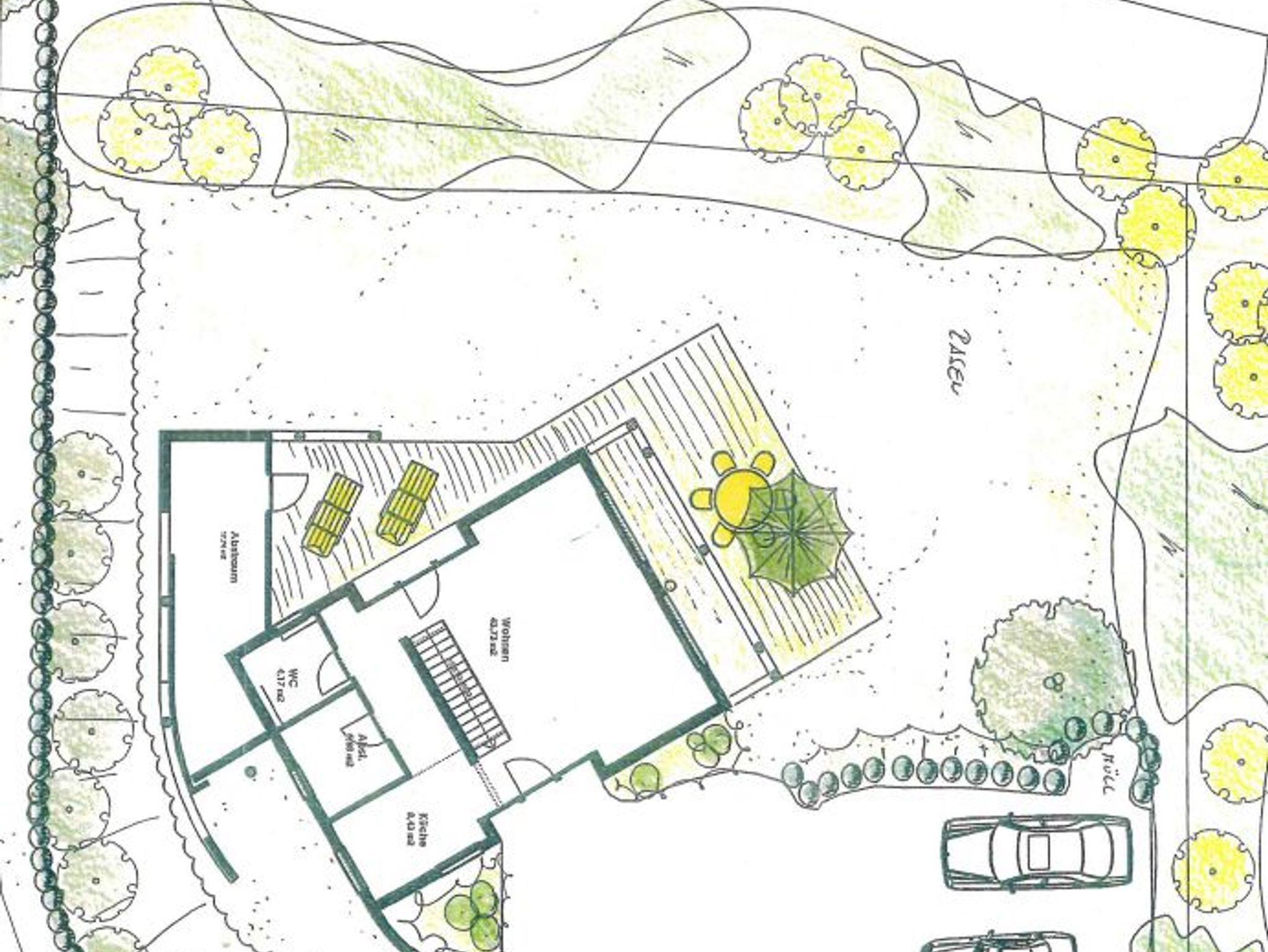 • Frühstücksterrasse (Nord/Ost) und Abendterrasse (Süd) mit Sitzmöbeln