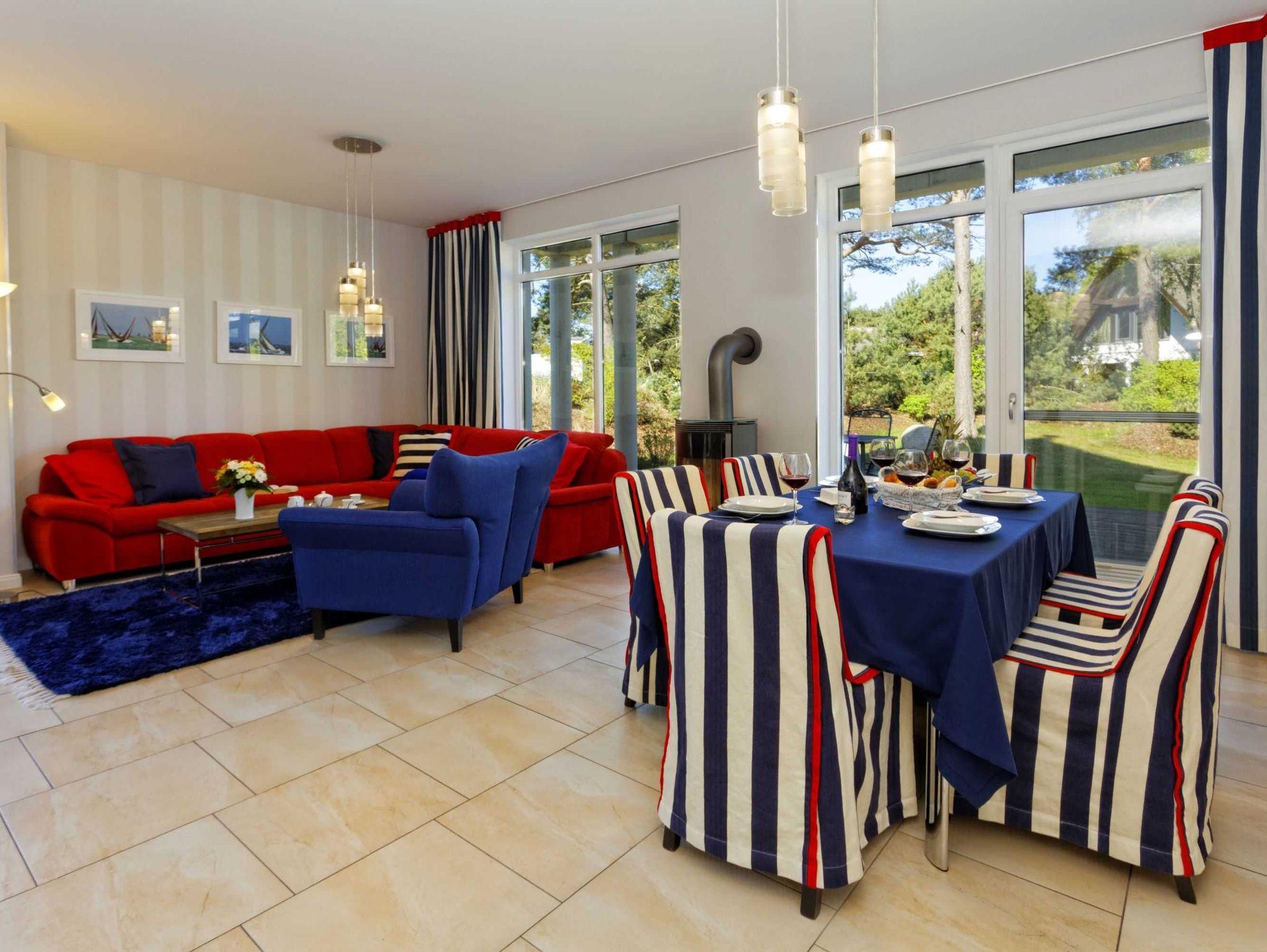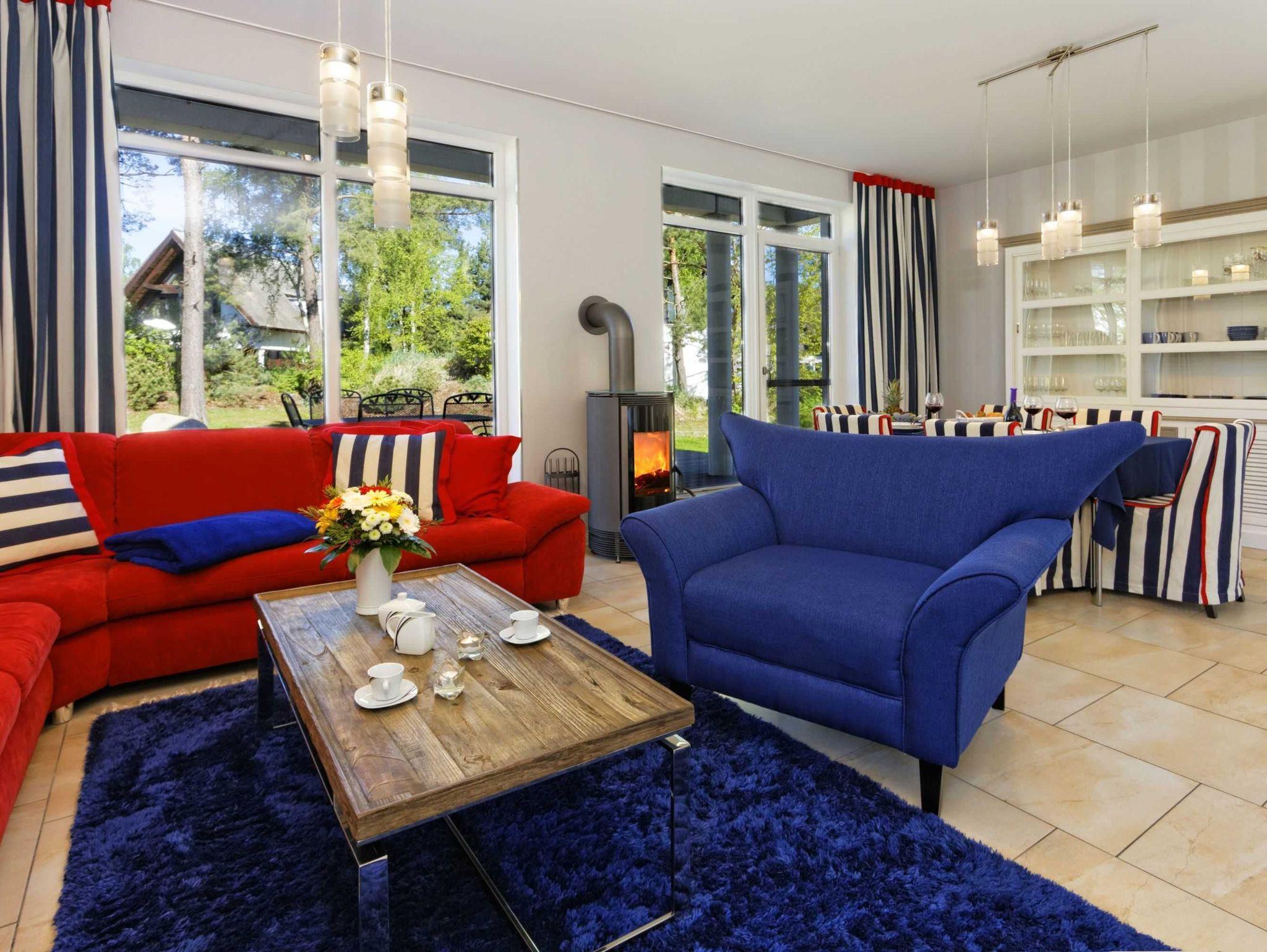 • Deckenhöhe im Erdgeschoss ca. 2,86 m, großzügiger Wohnraum ca. 42 m² mit Esstisch für 6 Personen, Ecksofa, Kamin, Flachbildfernseher mit ca. 130 cm Bilddiagonale, Stereoanlage (CD, Radio), Bluray-Player, Internet-WLAN