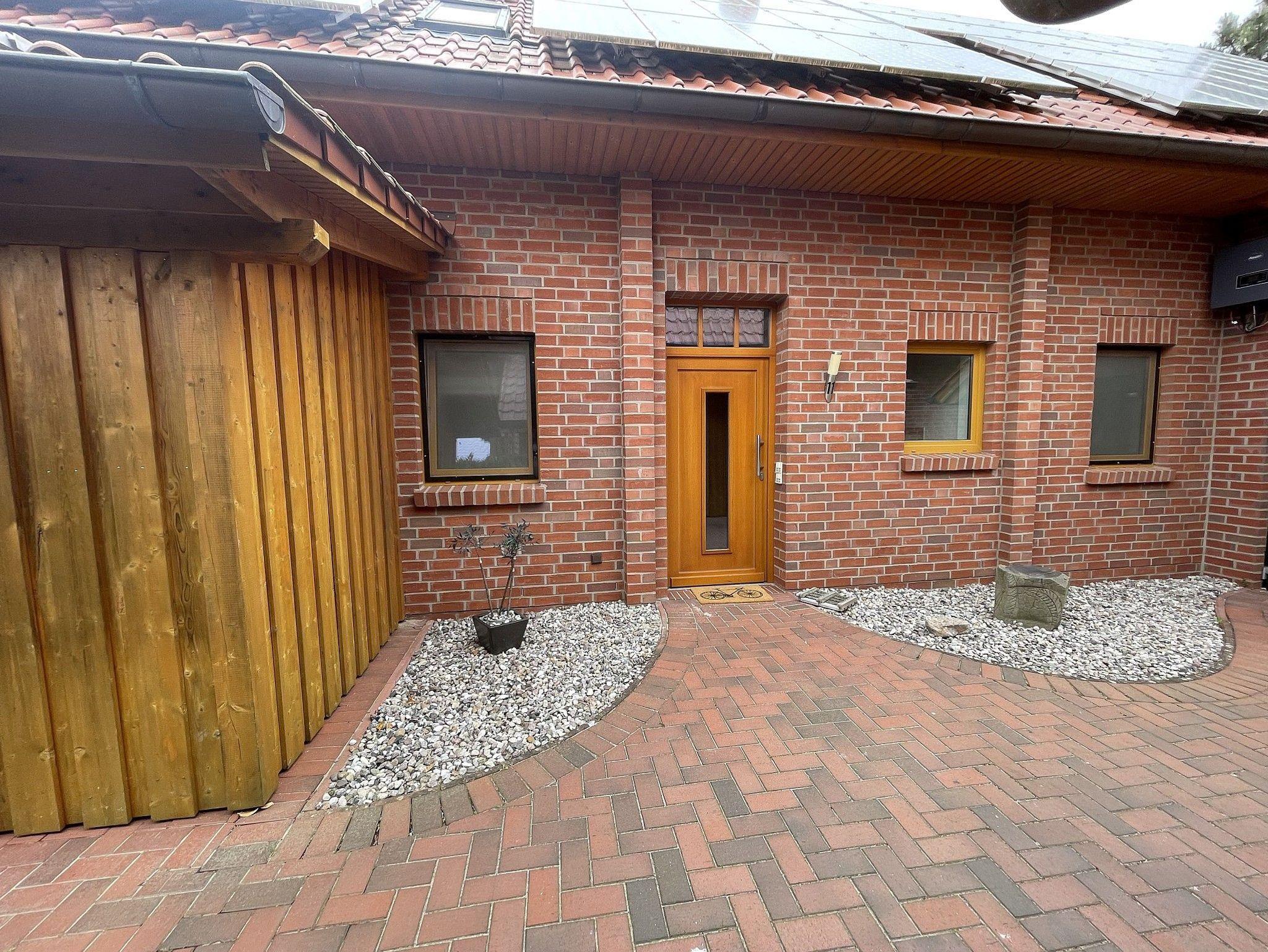Zur Wohnung gehört ein Garten mit Terrasse und einem abschließbarem Fahrradschuppen.