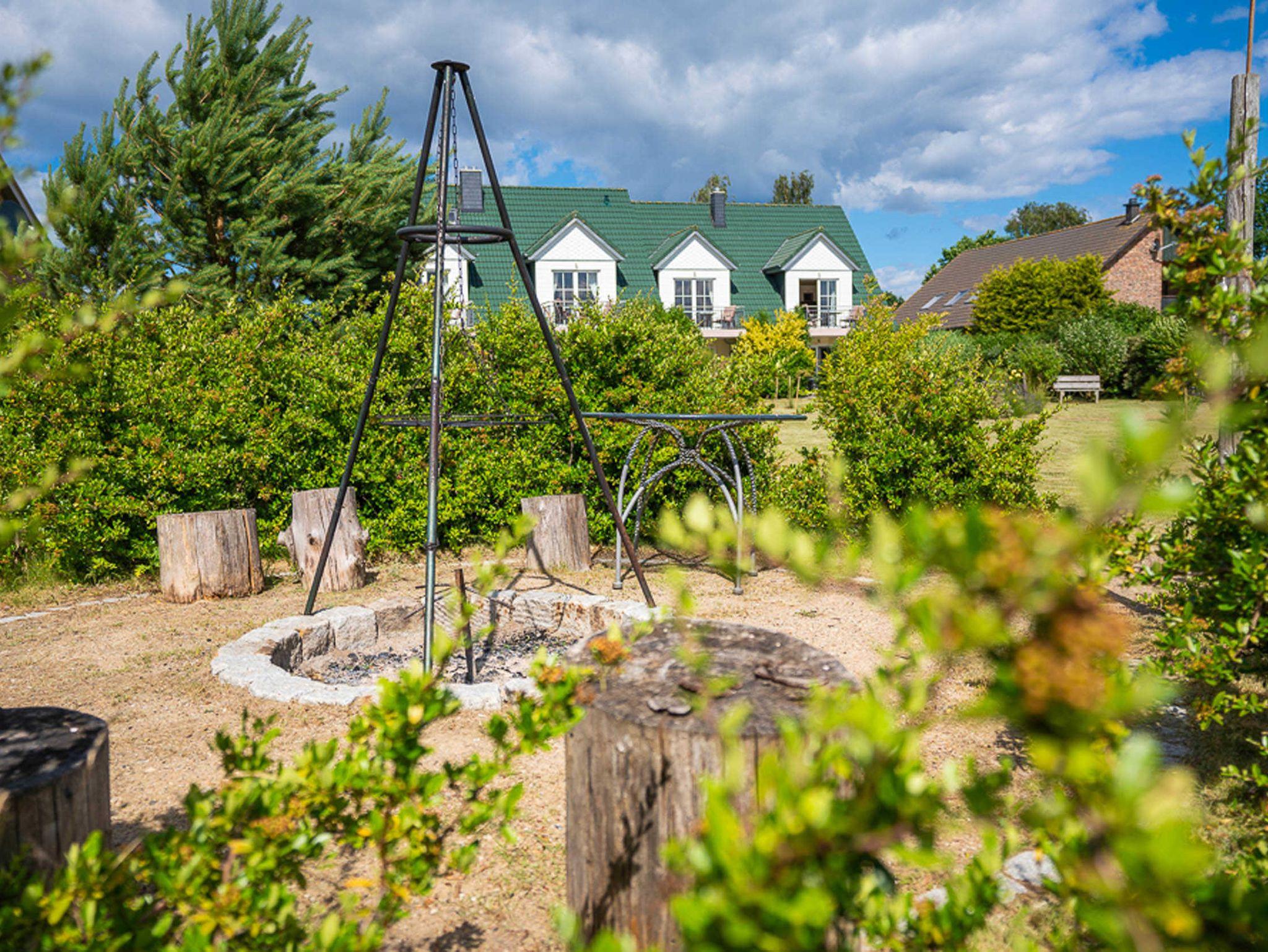 Der große Garten bietet Auslauf zum Spielen, Sitzplätze in Pavillons, Grillplätze und eine Feuerstelle für schöne Abende nach einem Tag am weißen, breiten und langen Strand.