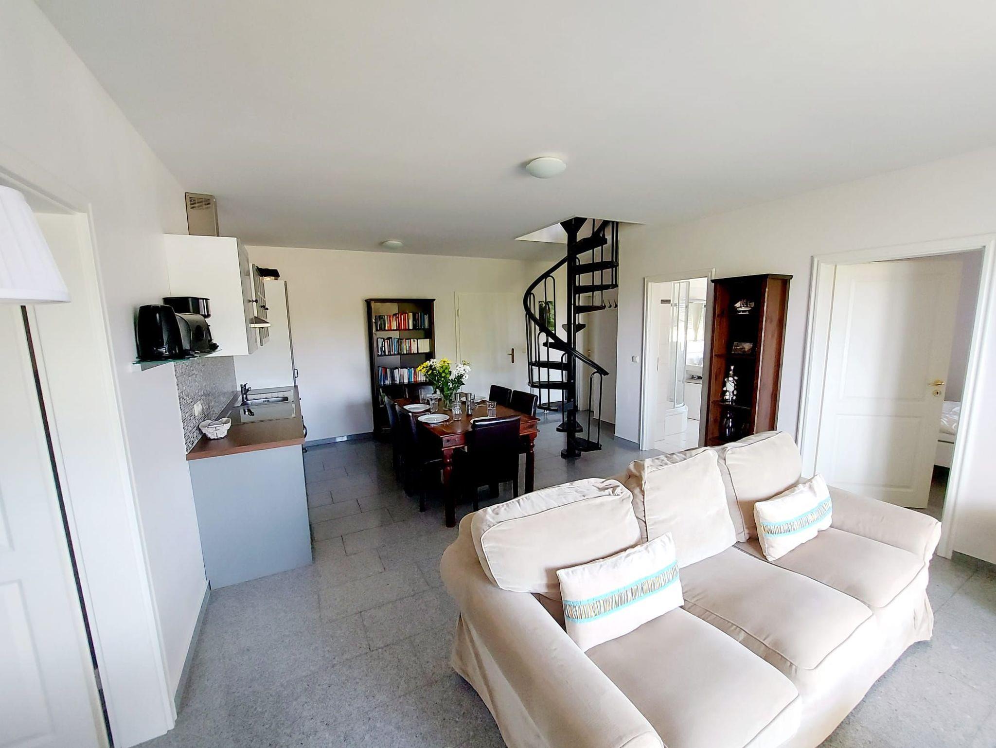 Die Ferienwohnung ist kinderfreundlich ausgestattet mit Kinderstuhl, Kinderbett, Toilettensitz, Kinderbücher und Spielzeug. Direkt vor der Tür befindet sich ein Spielplatz.