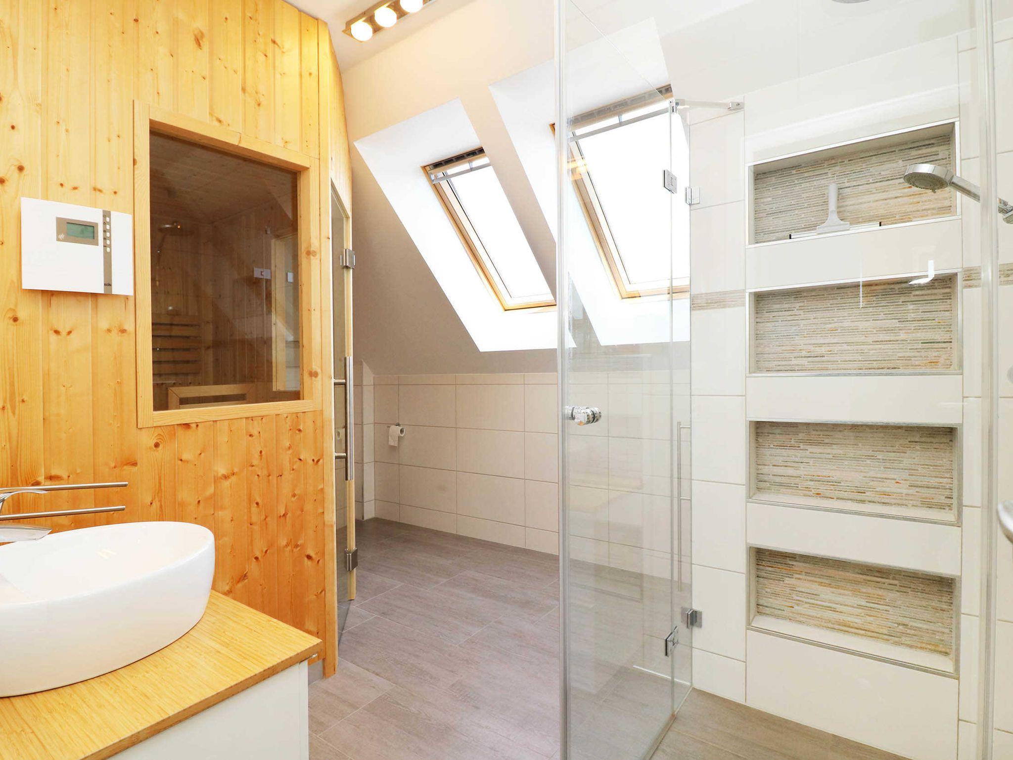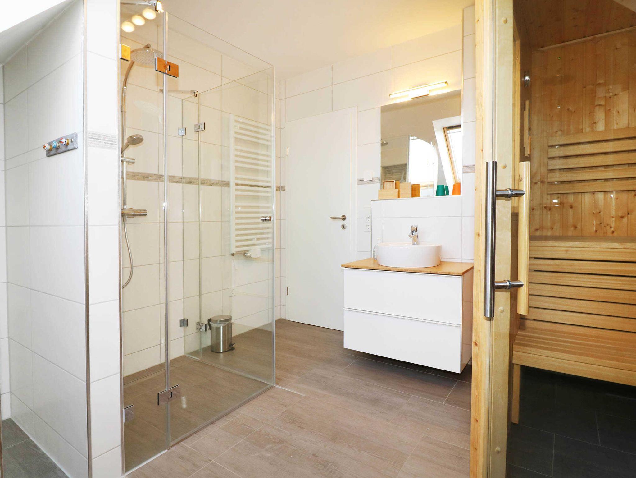 - 1 Bad mit WC, Dusche und Sauna im oberen Bereich