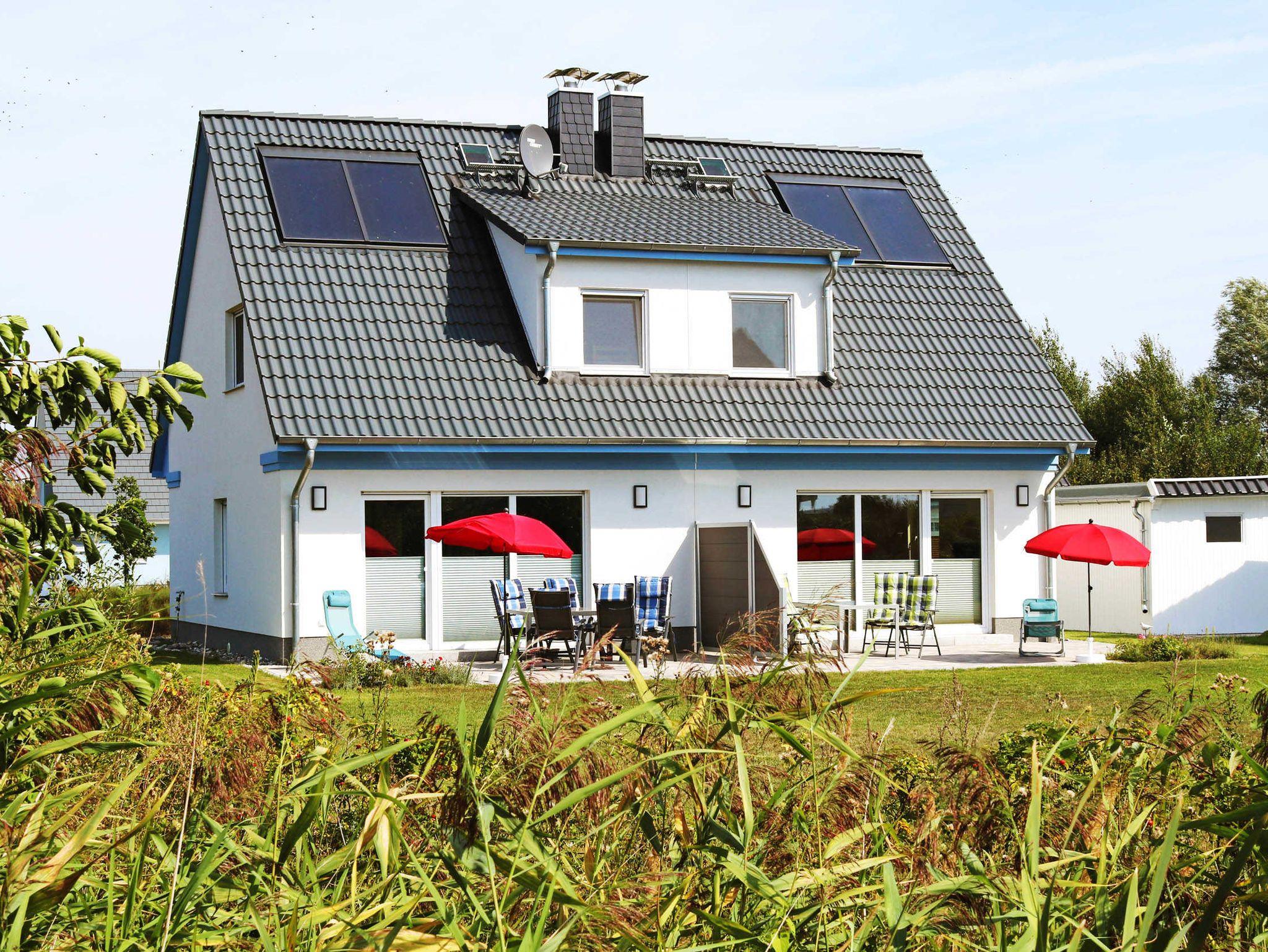 Diese Feriendoppelhaushälfte mit großer Sonnenterrasse bietet den Gästen reichlich Platz und ist mit Terrassenmöbeln ausgestattet.