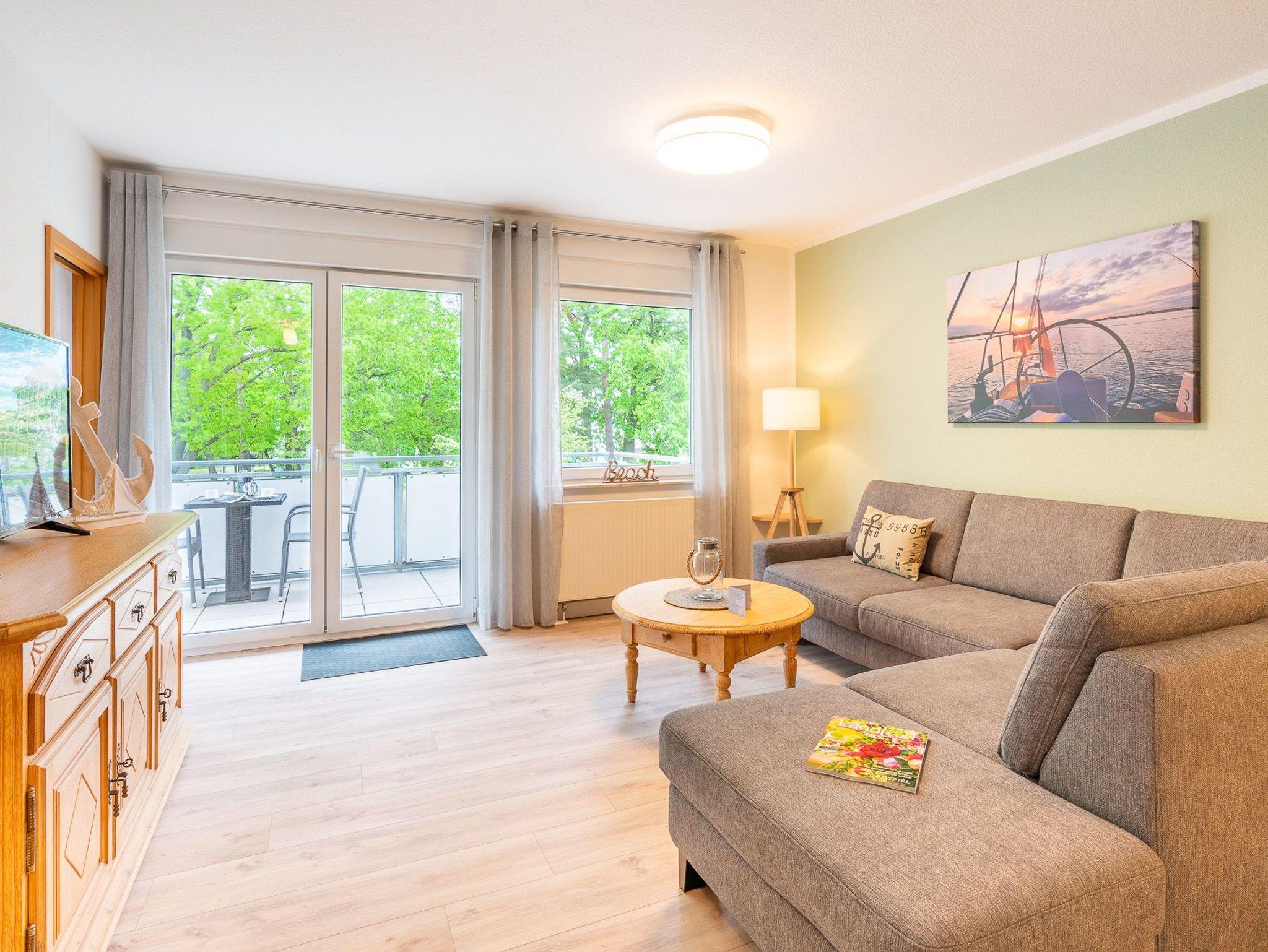 Das Wohnzimmer besitzt eine gemütliche Sitzecke und einen Fernseher, hier können Sie gemeinsam die Zeit in Ihrer Ferienwohnung ausnutzen. Die komplett eingerichtete Küchenzeile ermöglicht es Ihnen Ihre Kochkünste frei zu entfalten. Das Schafzimmer ist mit einem Doppelbett ausgestattet. In dem Bad befinden sich Dusche sowie WC. Auf dem Balkon können Sie bequem Ihren Tag ein- und ausklingen lassen. WLAN ist vorhanden. Waschmaschine und Trockner können Sie gegen Entgelt verwenden. Natürlich gibt es auch einen PKW-Parkplatz auf dem Grundstück. Zum feinsandigen, weißen Badestrand sind es nur ca. 3-4 Gehminuten.