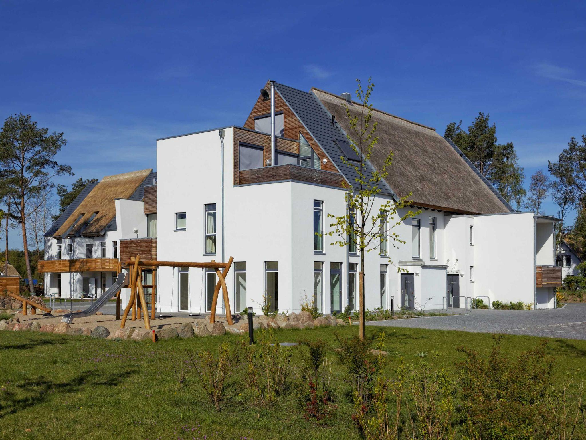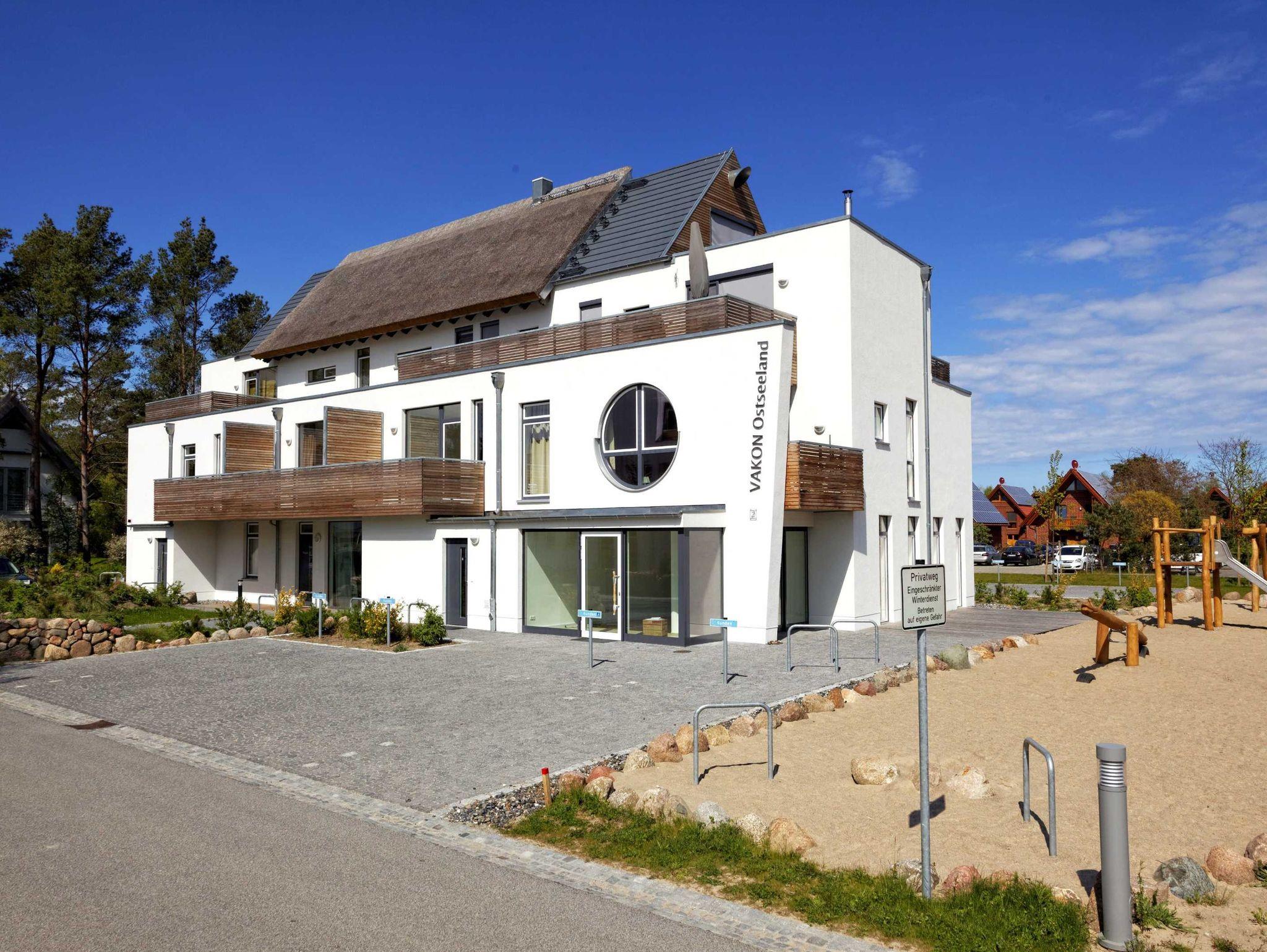 VAKON Ostseeland in Karlshagen ist eine in Mecklenburg-Vorpommern einzigartige Ferienhaus-Anlage bestehend aus 42 großzügigen, schilfrohrgedeckten Strandhäusern mit bis zu 220 m² Wohnfläche und 26 Ferienwohnungen mit bis zu ca. 180 m² Wohnfläche. Dieses exklusive, 2013 erbaute Appartementhaus mit 8 Wohneinheiten ist ca. 4 Gehminuten vom Strand entfernt. Die Wohnungen verfügen über Waschmaschine, kostenloses Internet WLAN, Terrasse oder Balkon und Pkw-Stellplatz.