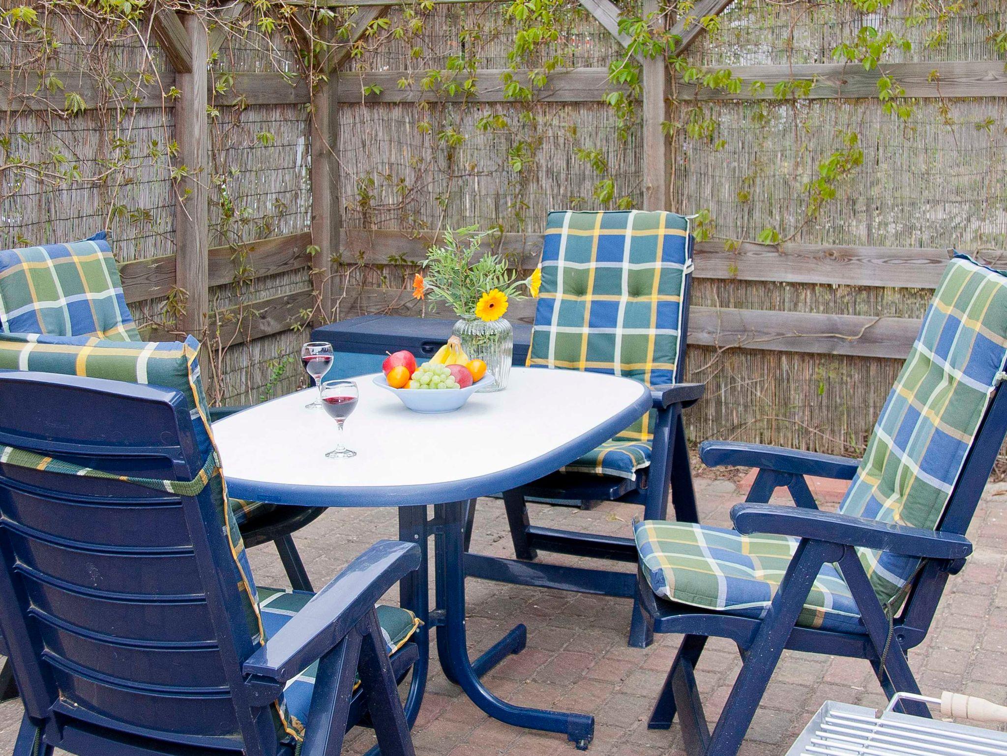 Das Wohnzimmer ist mit Doppelbettcouch,Einbauanbaureihe, Radio/TV,Couchtisch,Rattansessel u. Essecke ausgestattet,das Schlafzimmer mit Doppelbett. Zur Küche gehören u.a.Herd incl.Backofen, Kühlschrank mit Gefrierfach, Geschirr. Zum Bad gehört Dusche,WC u.Waschtisch, Fön.Zur Fewo gehören Terrasse,Holzkohlegrill,Parkplatz