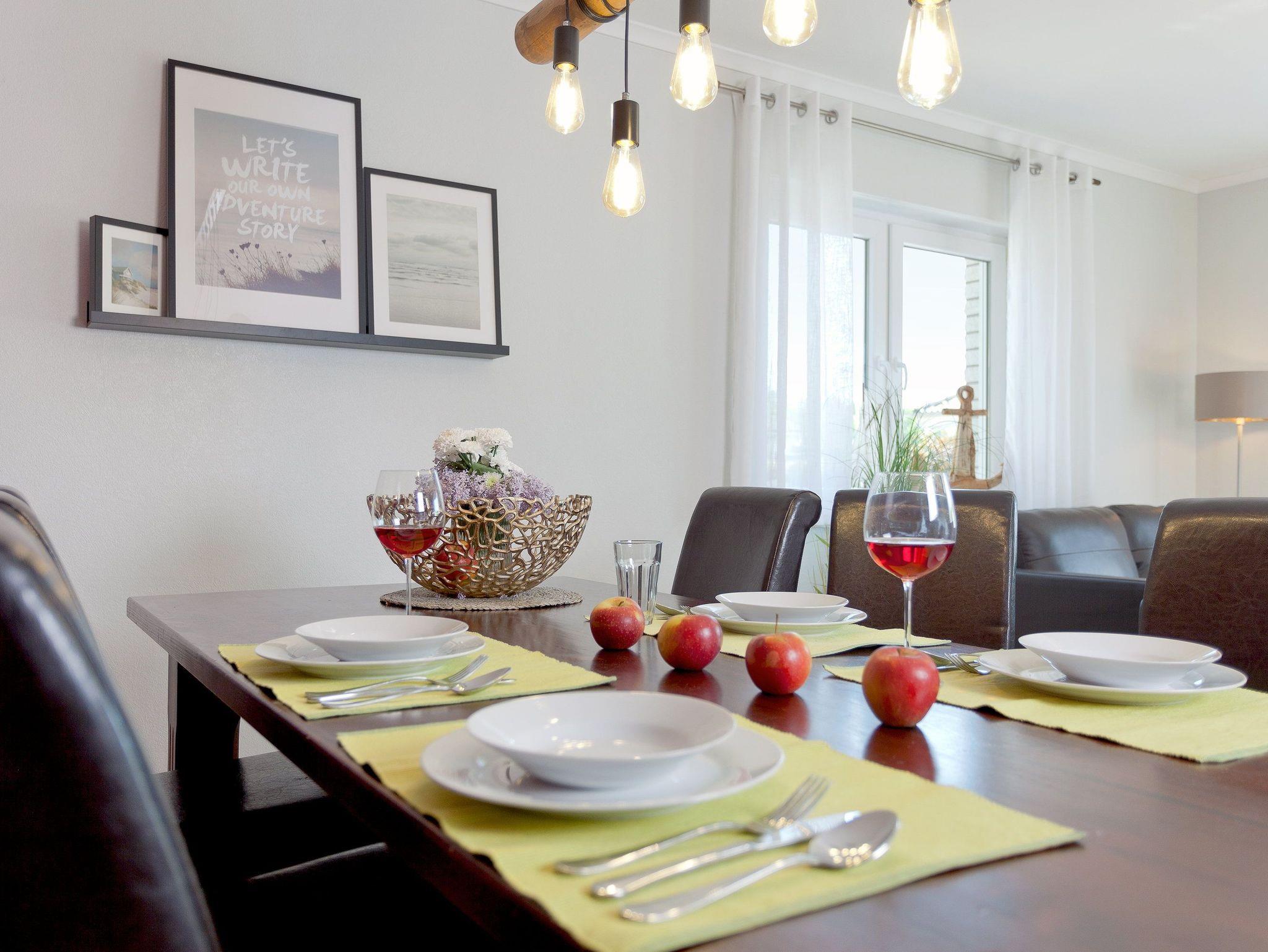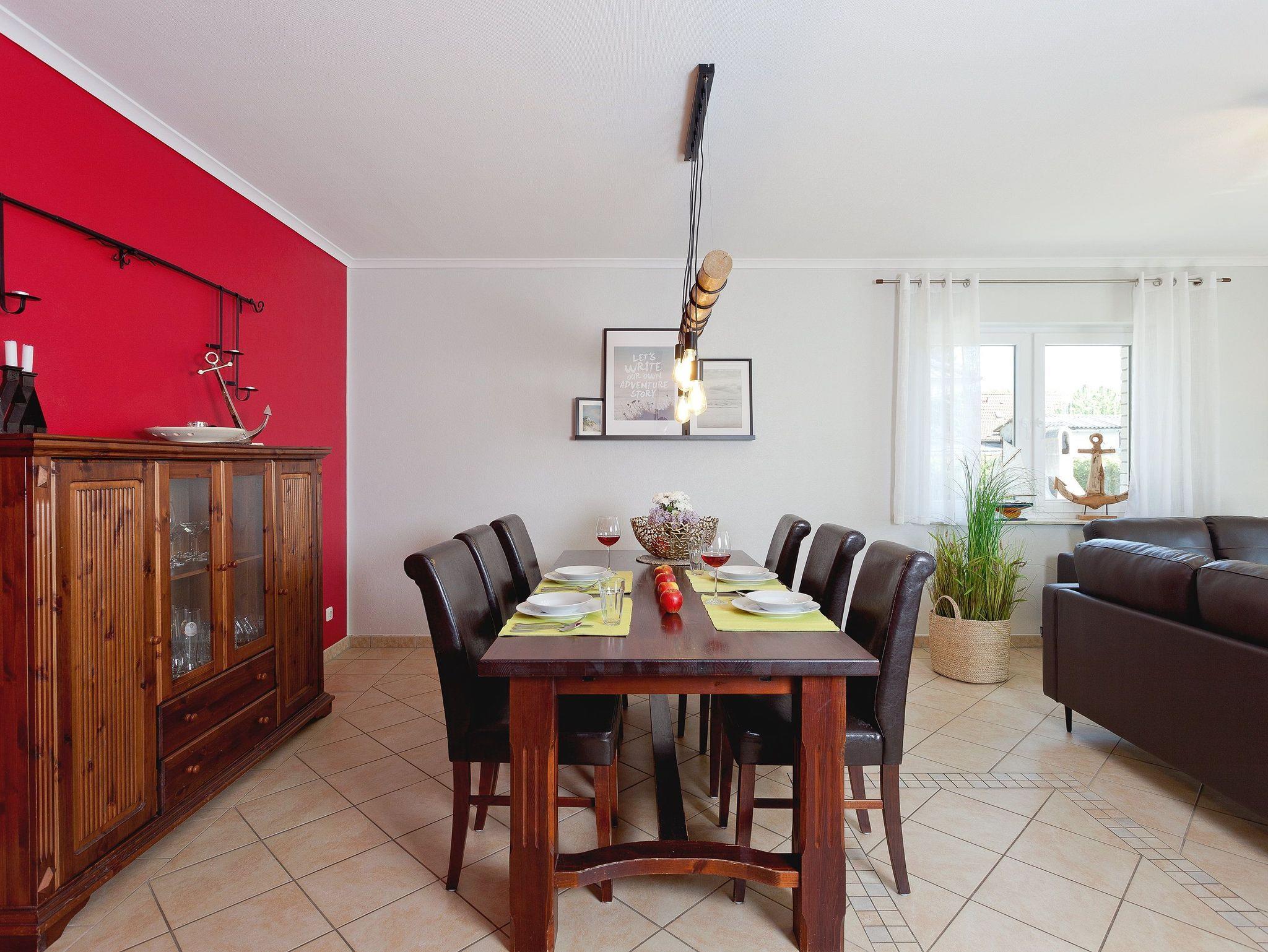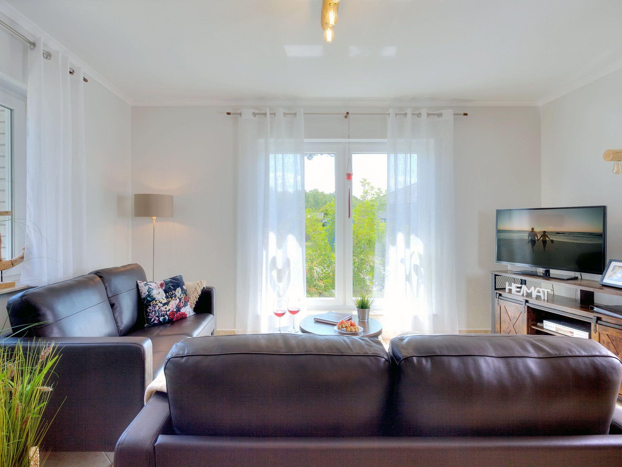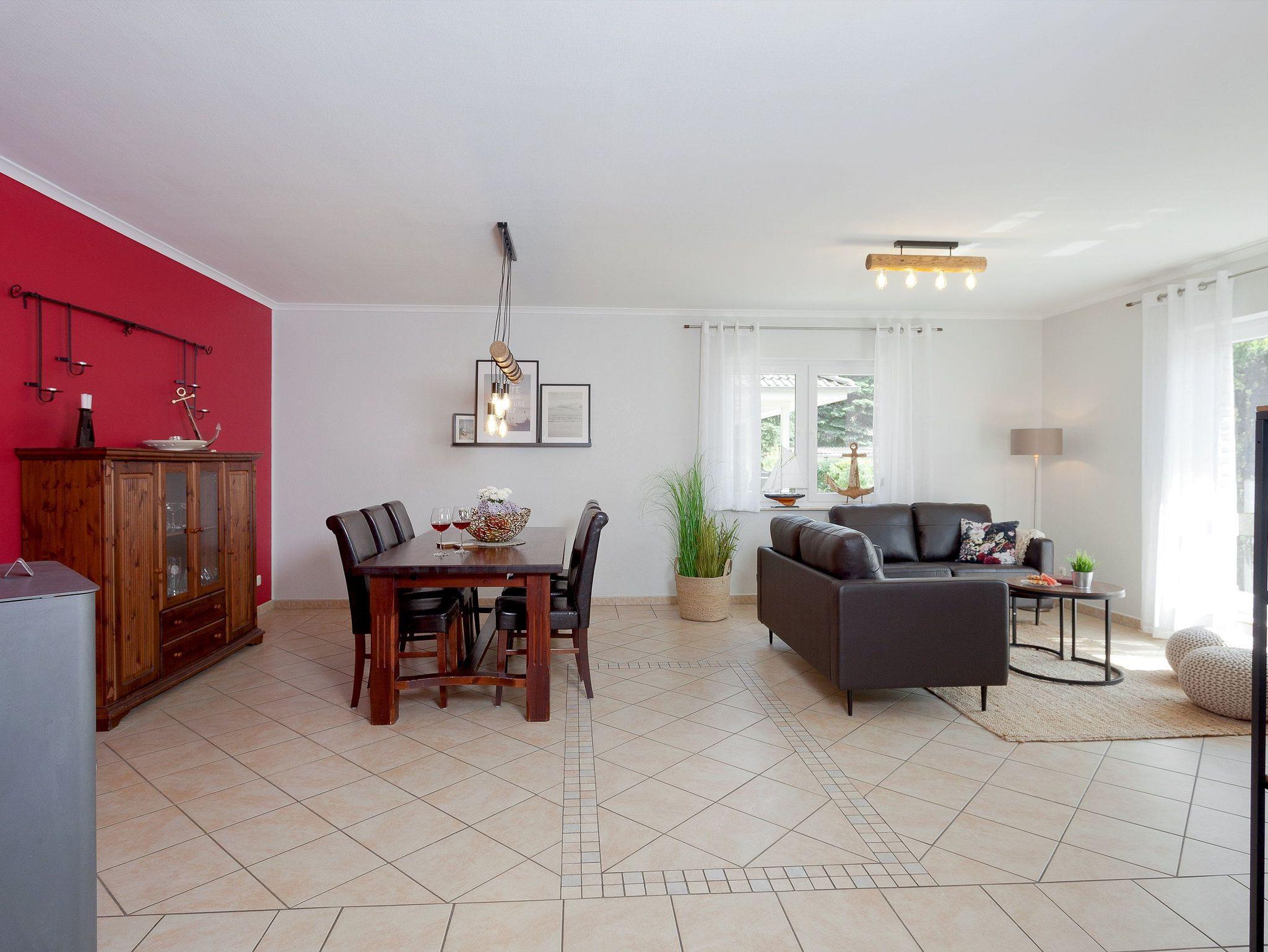Alle Zimmer befinden sich im Erdgeschoss und sind vom Flur des Hauses begehbar. Der lichtdurchflutete Wohn- und Essbereich mit gemütlicher Eckcouch, Flat-TV, Kamin sowie Zugang zur überdachten Terrasse bietet allen Erholungssuchenden ein ideales Plätzchen für eine Auszeit vom Trubel des Alltags. Dank traumhafter Lage befinden Sie sich das ganze Jahr über auf der Sonnenseite. Ein weiteres I-Tüpfelchen ist das ca. 200 Quadratmeter große Grundstück mit eigenen Außengrill sowie Schaukel und Rutsche für unsere kleineren Gäste. Ein besonderes Highlight ist der Holzofen. Gern können Sie sich hierfür benötigtes Brennholz und Anzünder (bei Bedarf) mitbringen. Die Fußbodenheizung im Haus sorgt zusätzlich für eine wohlige Wärme das gesamte Jahr über. Die im Wohnbereich integrierte Küchenzeile lässt dank Backofen, Mikrowelle, Kühlschrank mit Gefrierfach, Geschirrspüler, Wasserkocher, Toaster, Kaffee- und Padmaschine (Nescafe Dolce Gusto) und großzügigem Esstisch keine Wünsche offen.